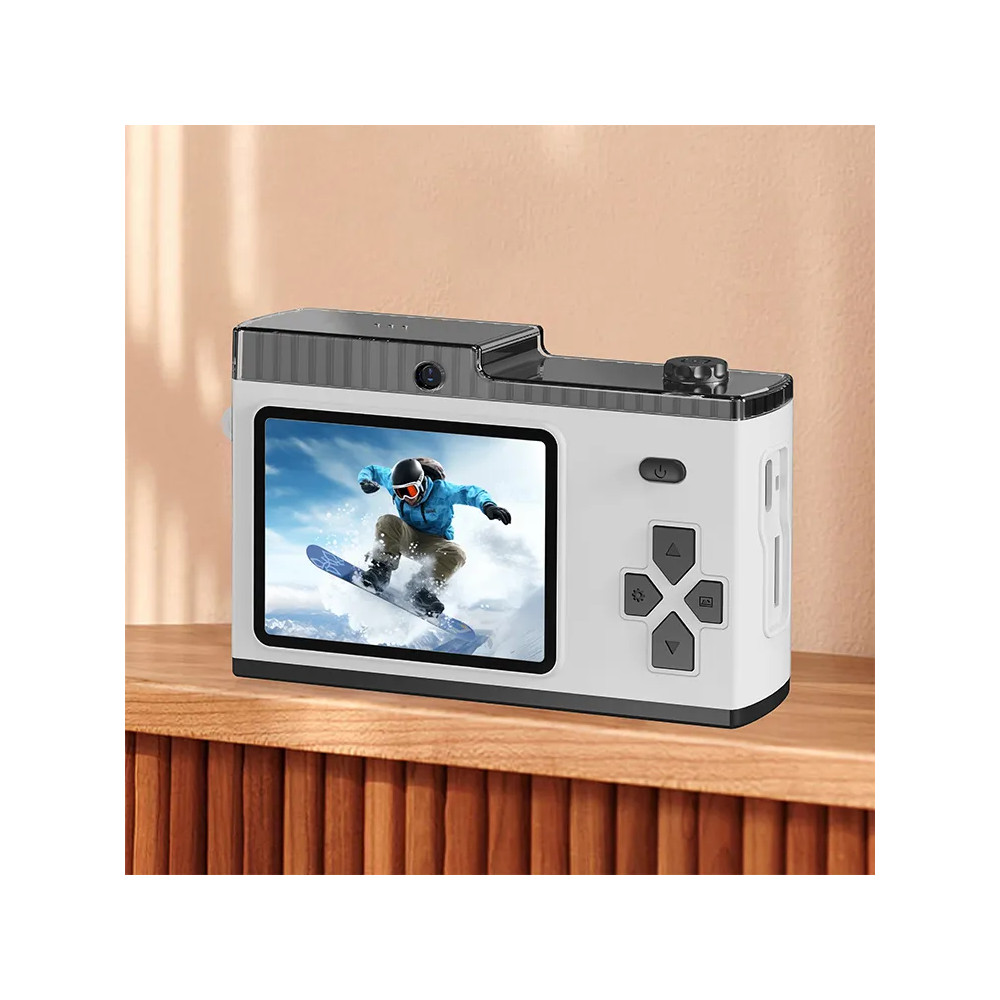 Detský fotoaparát s termálnou tlačiarňou na okamžitú tlač. Biela farba. Možnosť nahrávania videa....