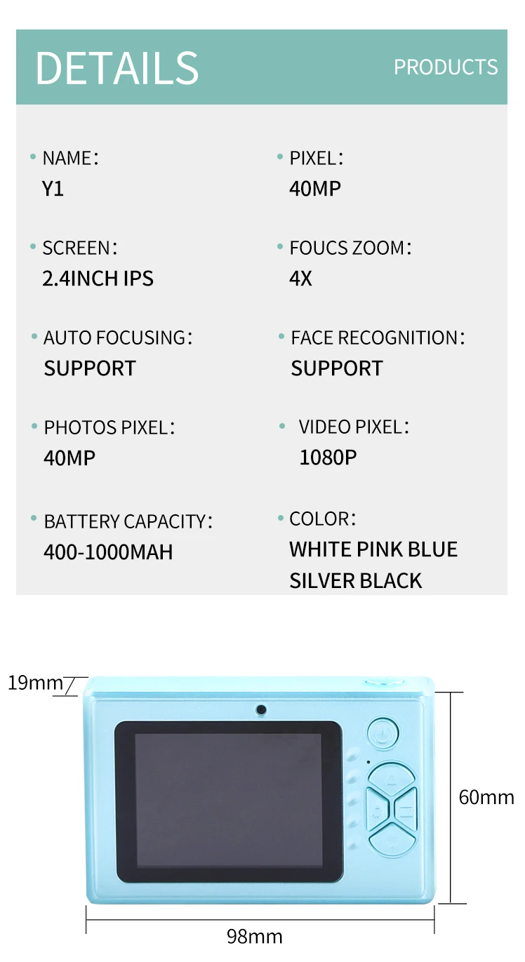 Roztomilý detský digitálny fotoaparát s 2,4" obrazovkou. Nahrávanie videa v rozlíšení HD...