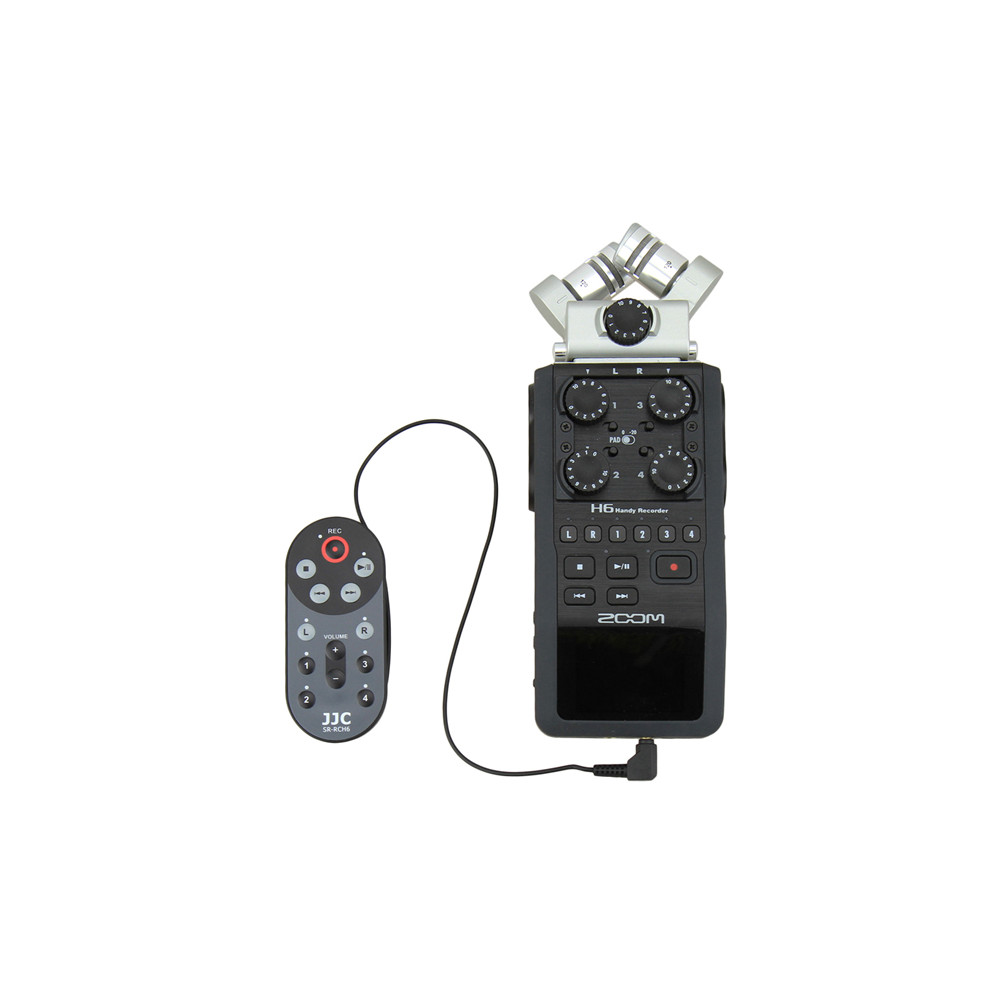 JJC SR-RCH6 je káblové diaľkové ovládanie na použitie s ručným rekordérom ZOOM H6. Umožňuje ovládať priebeh a hlasitosť ZOOM H6, takže môžete nahrávať bez otrasov. Týmto spôsobom dosiahnete dokonalú kvalitu tónu. Stačí pripojiť JJC SR-RCH6 ku konektoru diaľkového ovládania na ZOOM H6. ZOOM H6 budete môcť ovládať zo vzdialenosti až 1,5 m. JJC SR-RCH6 nahrádza diaľkové ovládanie ZOOM RCH6.