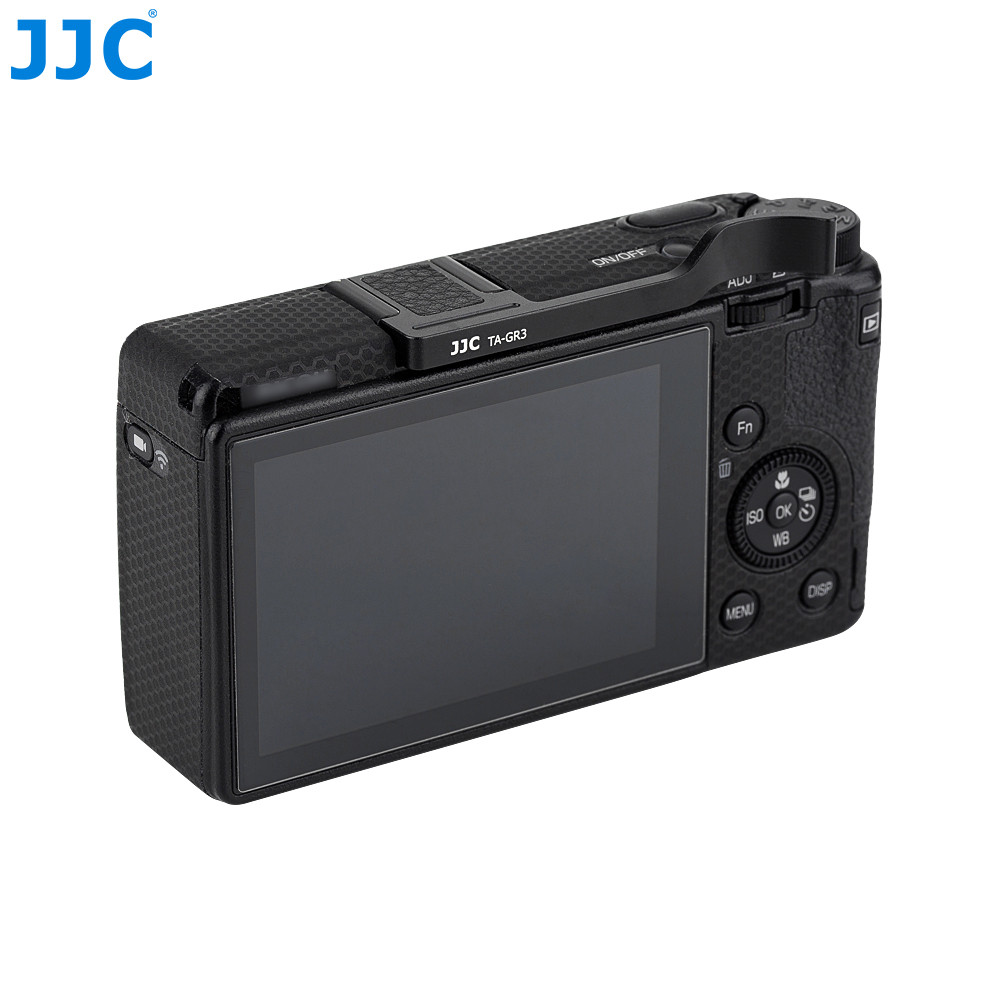 Grip JJC TA-GR3 Thumbs Up je špeciálne navrhnutý pre RIC. GR III HDF, GR IIIx HDF, GR IIIx a GR III. Poskytuje bezpečné uchopenie počas snímania a zvyšuje pohodlie pri držaní fotoaparátu. Grip je vyrobený z eloxovanej hliníkovej zliatiny a je pevný a odolný. Mikrovláknová koža na hornej strane gripu zvýrazňuje textúru fotoaparátu. Tento grip stačí vložiť do horúcej pätice fotoaparátu a budete si užívať výhody tohto gripu. Časť, ktorá sa dotýka horúcej pätice, je vybavená protišmykovou silikónovou podložkou, ktorá zabezpečuje bezpečnejšiu inštaláciu a zároveň chráni kontakty pred prachom a vlhkosťou. s týmto gripom nedochádza k žiadnemu zásahu do ovládacích prvkov fotoaparátu.