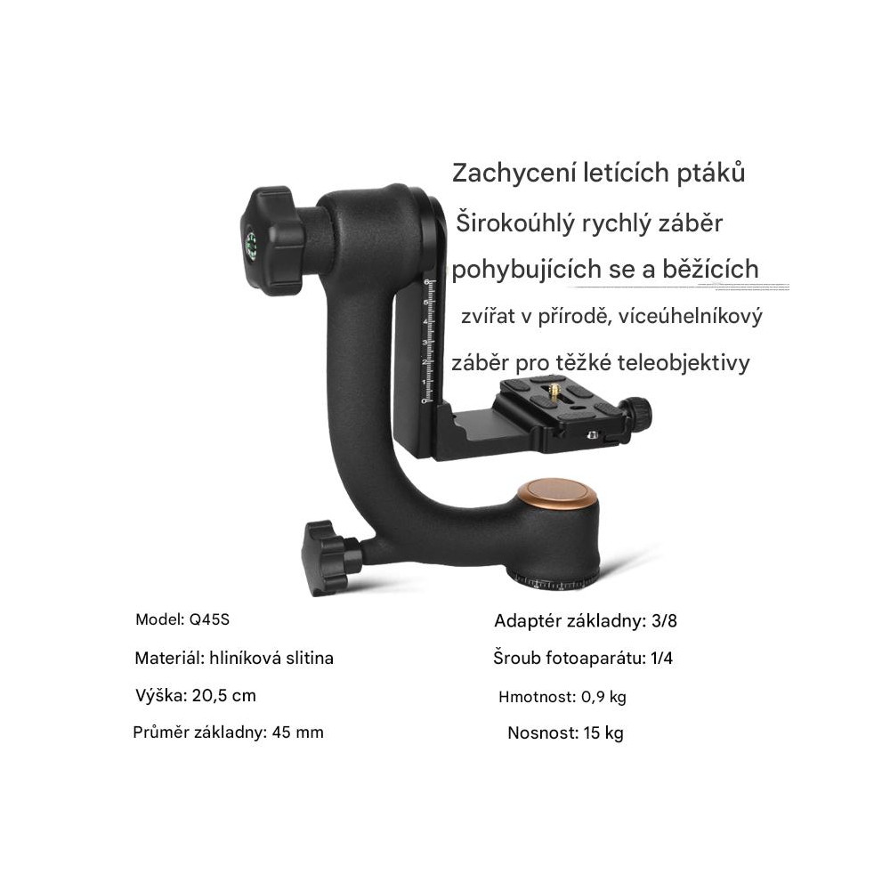 Predstavujeme kardanovú hlavu QZSD Q45 - ideálneho pomocníka pre všetkých fotografov, ktorí pracujú s ťažkými teleobjektívmi a potrebujú spoľahlivé vybavenie na fotografovanie divokej prírody, vtákov alebo športu. Táto robustná statívová hlava je navrhnutá tak, aby vám umožnila jednoduchú manipuláciu s vybavením aj pri práci s veľmi veľkými objektívmi.