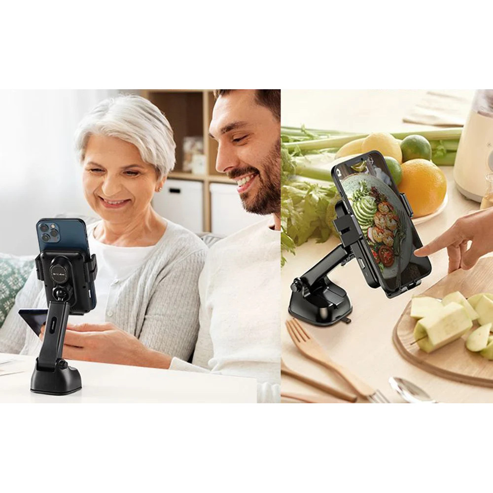 Rukoväť je navrhnutá s ohľadom na používateľskú prívetivosť. Automatické zatváranie po vložení smartfónu zabezpečuje jednoduchú manipuláciu, zatiaľ čo špeciálne tlačidlo umožňuje rýchle uvoľnenie. Vďaka silikónovému povrchu je telefón viac chránený pred poškodením. Okrem toho si môžete jednoducho nastaviť dĺžku rukoväteaž do dĺžky 14,5 cm a otáčať ho o 360°, čo umožňuje optimálne umiestnenie na sledovanie navigácie alebo prijímanie hovorov.