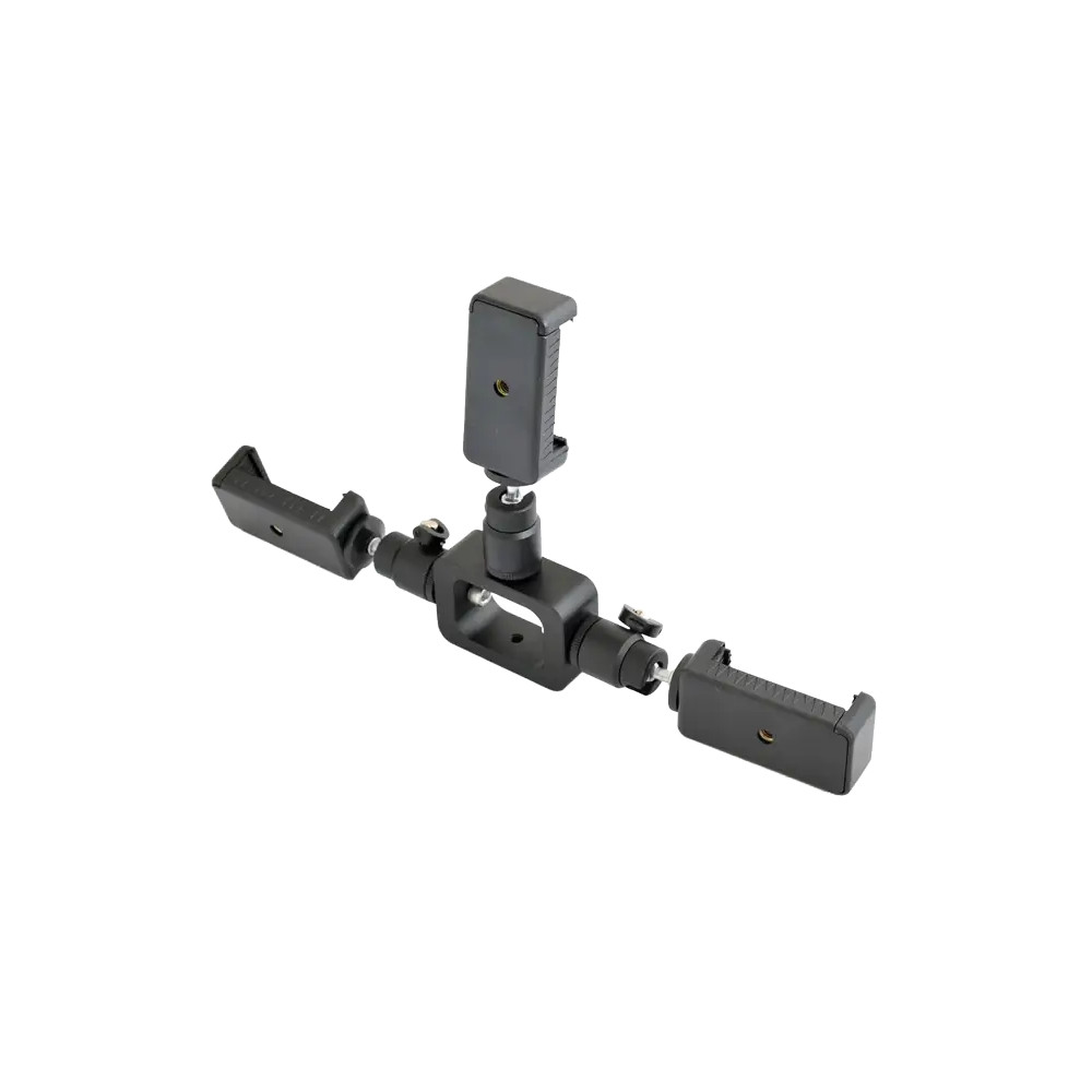 Trojitý držiak použite na filmovanie, streamovanie a podvádzanie s viacerými ľuďmi. Klipy pevne držia vložený telefón, telefón jednoducho vložte vysunutím klipu (sú univerzálne pre väčšinu telefónov). Každé zariadenie môžete nastaviť do požadovanej polohy pomocou miniatúrnej guľovej hlavy.