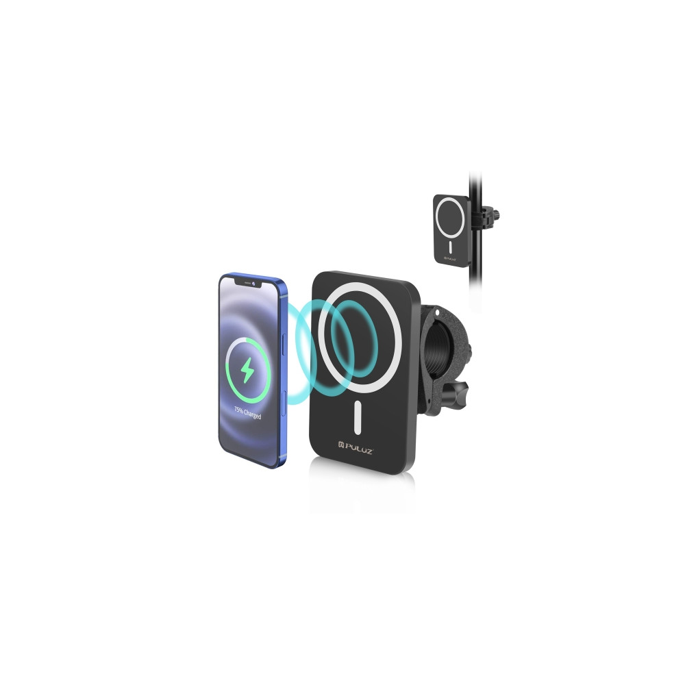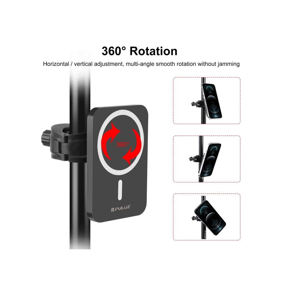 PULUZ 15W magnetická bezdrôtová nabíjačka Qi, telefón na videohovory, svorka, držiak. Vhodné na montáž na tyč, statív alebo mini statív. USB kábel na napájanie je súčasťou balenia. Adaptér nie je súčasťou balenia.