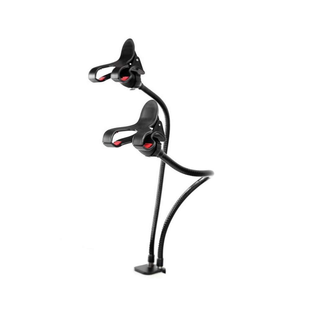 Tento univerzálny dvojitý držiak na telefón je ideálny pre každého, kto používa smartfóny ako svoj hlavný pracovný nástroj. Je navrhnutý tak, aby poskytoval maximálnu flexibilitu a stabilitu pri používaní, čo ocenia najmä online tvorcovia, influenceri a všetci, ktorí sa venujú živému vysielaniu alebo tvorbe obsahu na sociálnych sieťach.