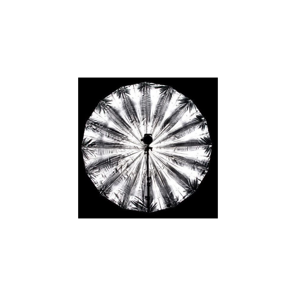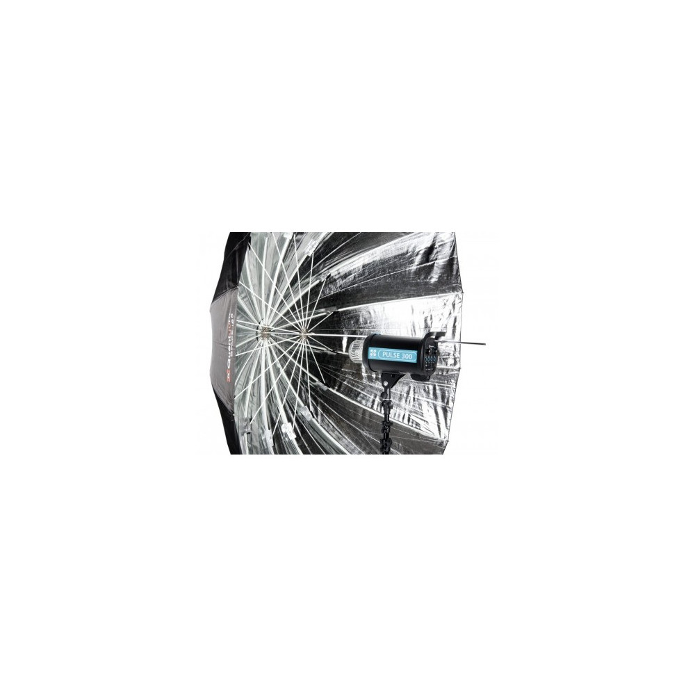 Vesmírny strieborný parabolický dáždnik Quadralite 185 cm - s vnútornou vrstvou, ktorá silne odráža dopadajúce svetlo. Rám je vyrobený zo sklolaminátových tyčí namiesto kovu, čo zabezpečuje, že tento dáždnik je relatívne ľahký a pružný s vysokou pevnosťou materiálu. Vďaka tomu je tento dáždnik mimoriadne hlboký ako bežný dáždnik. Odrazový materiál je vyrobený z vysokopevnostného polyesteru, vďaka čomu je robustnejší ako jeho lacnejší kolegovia. dáždnik sa dodáva v obale, ktorý umožňuje jednoduchú prepravu a manipuláciu. Veľmi vhodný na všetky portrétne fotenia.