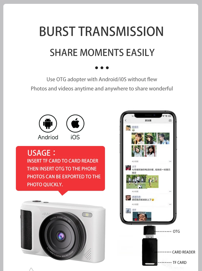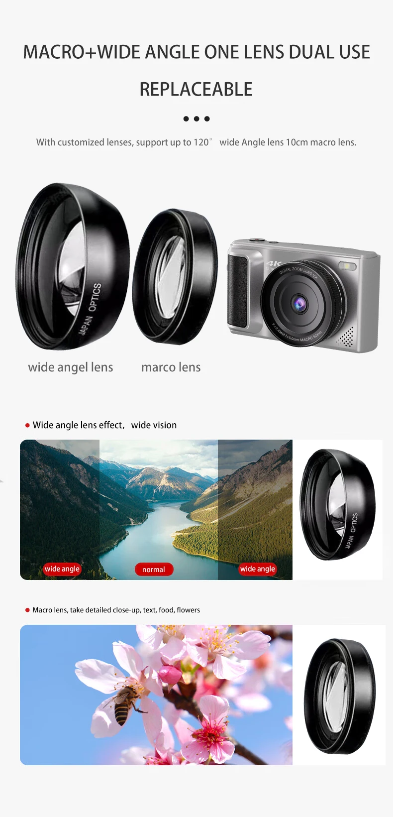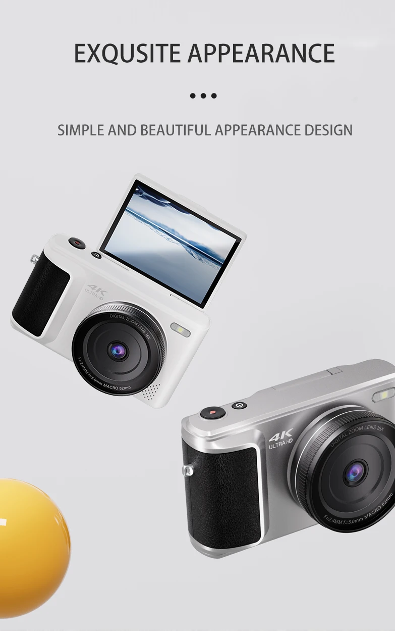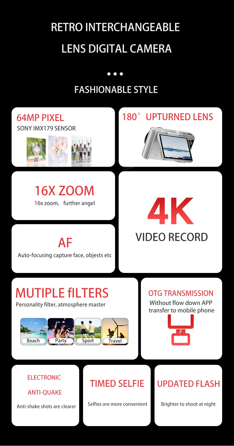 Digitálny fotoaparát v retro štýle pre začiatočníkov s nahrávaním videí v rozlíšení 4K, snímaním s rozlíšením až 64 Mpx, 16-násobným 1-násobným optickým zoomom.