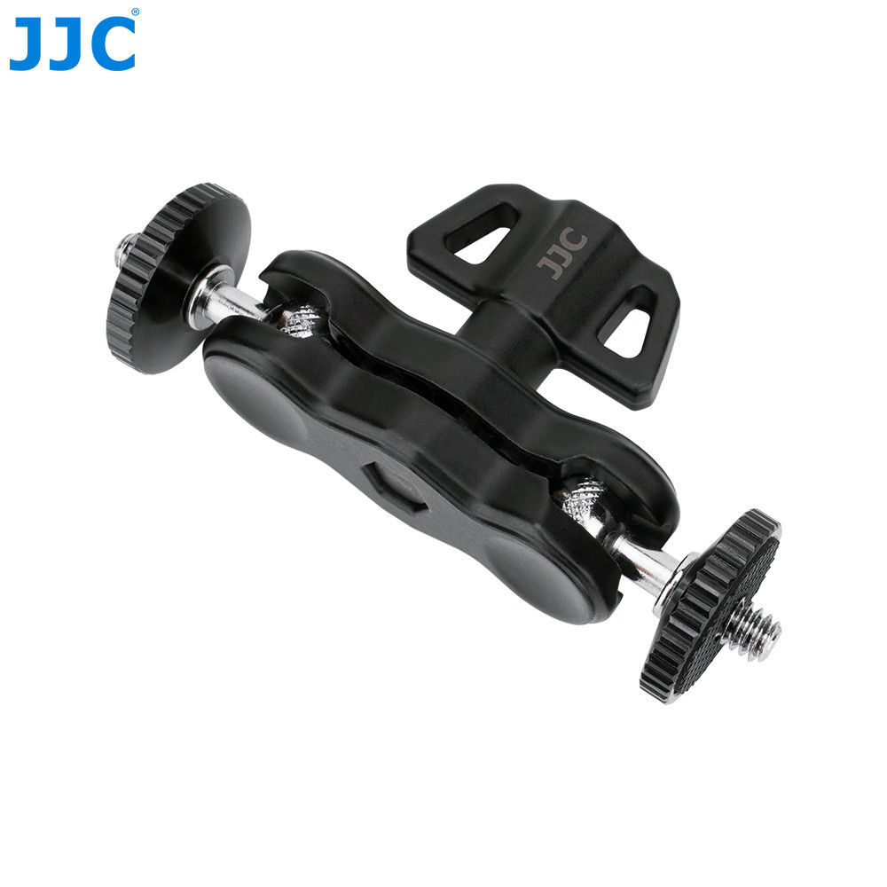 Multifunkčný držiak JJC MFC-B je kľúčovým prvkom na vytvorenie flexibilného a efektívneho fotografického zariadenia. Je vyrobený z vysokokvalitnej hliníkovej zliatiny, vďaka čomu je ľahký a odolný. Oba konce sú vybavené vonkajším závitom 1/4"-20, čo umožňuje priame pripojenie príslušenstva s vnútorným závitom 1/4"-20. Rozhranie so závitom je vybavené protišmykovými gumovými podložkami, ktoré chránia pripojené príslušenstvo pred poškriabaním. Uvoľnením aretačného gombíka môžete voľne nastaviť uhol pripojeného príslušenstva; utiahnutím gombíka ho bezpečne zaistíte na mieste.