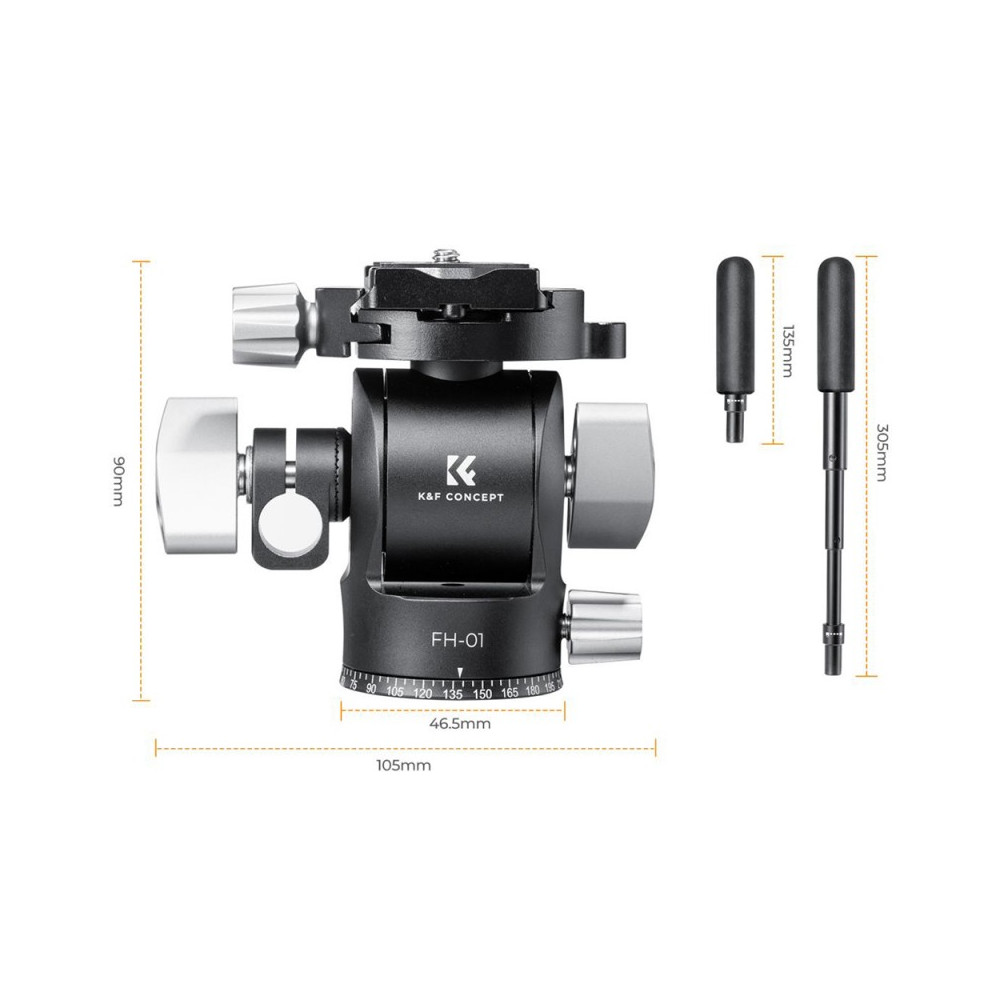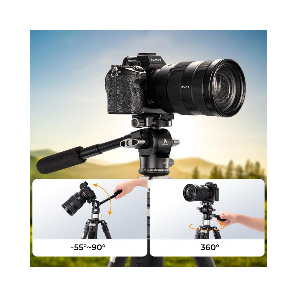 K&F Concept FH-01 je ľahká a odolná 2D kamera s nastaviteľnou ovládacou rukoväťou. Ponúka možnosť otáčania o 360° a nastavenia sklonu v rozsahu od -55° do +90°. Je kompatibilná s fotoaparátmi a videokamerami s hmotnosťou do 3 kg. Má odnímateľný rýchloupínač v štandarde Arca Swiss. Určený pre statívy so závitom 3/8''. Ideálny na plynulé natáčanie videí a vlogovanie.