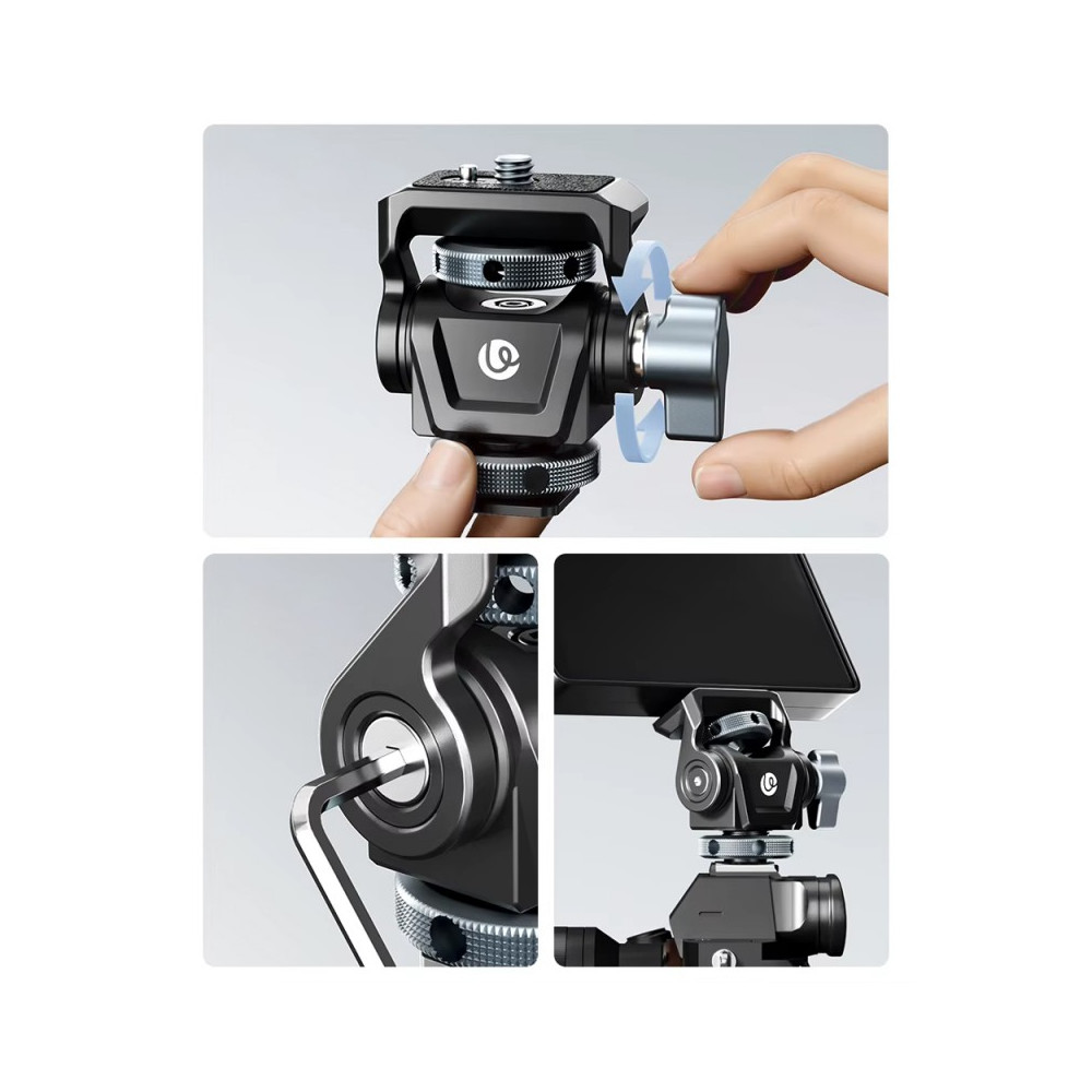 Hlava Ulanzi CO82 uľahčuje rýchle a presné nastavenie ďalšieho príslušenstva bez toho, aby ste museli rozširovať celú súpravu o väčšie montážne prvky. Nastaviteľný odpor umožňuje lepšie prispôsobiť ovládanie hlavy konkrétnemu zariadeniu, zatiaľ čo jej kompaktný tvar zaručuje ľahkosť a pohodlie pri každodennom používaní. Ide o praktické riešenie pre tých, ktorí chcú mať svoju zostavu usporiadanú a mať väčšiu kontrolu nad polohou monitora, lampy alebo iného príslušenstva.