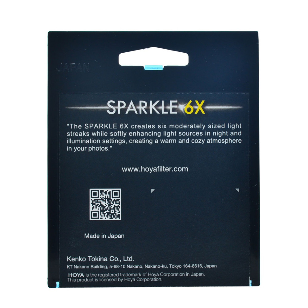 HOYA SPARKLE 6X je filter, ktorý pri fotografovaní nočnej oblohy absolútne žiari (doslova). Využitím svetelných zdrojov jasnejších hviezd a ich premenou na hviezdy so 6 bodmi séria SPARKLE jednoducho vytvára nádherný a fascinujúci efekt na vašich fotografiách - čím nastavuje nový štandard astrofotografie.