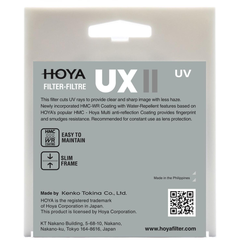 UV filter UX II s vodoodpudivou vrstvou je prepracovaný filter HMC UV(C), ktorý je teraz spolu s filtrom UX II CIR-PL začlenený do nového štandardného radu triedy UX II. UV filter UX II je úplne nový koncepčný dizajnový výrobok určený pre používateľov základnej úrovne, ktorý poskytuje vysoký štandard kvality so základnými a pokročilými funkciami.