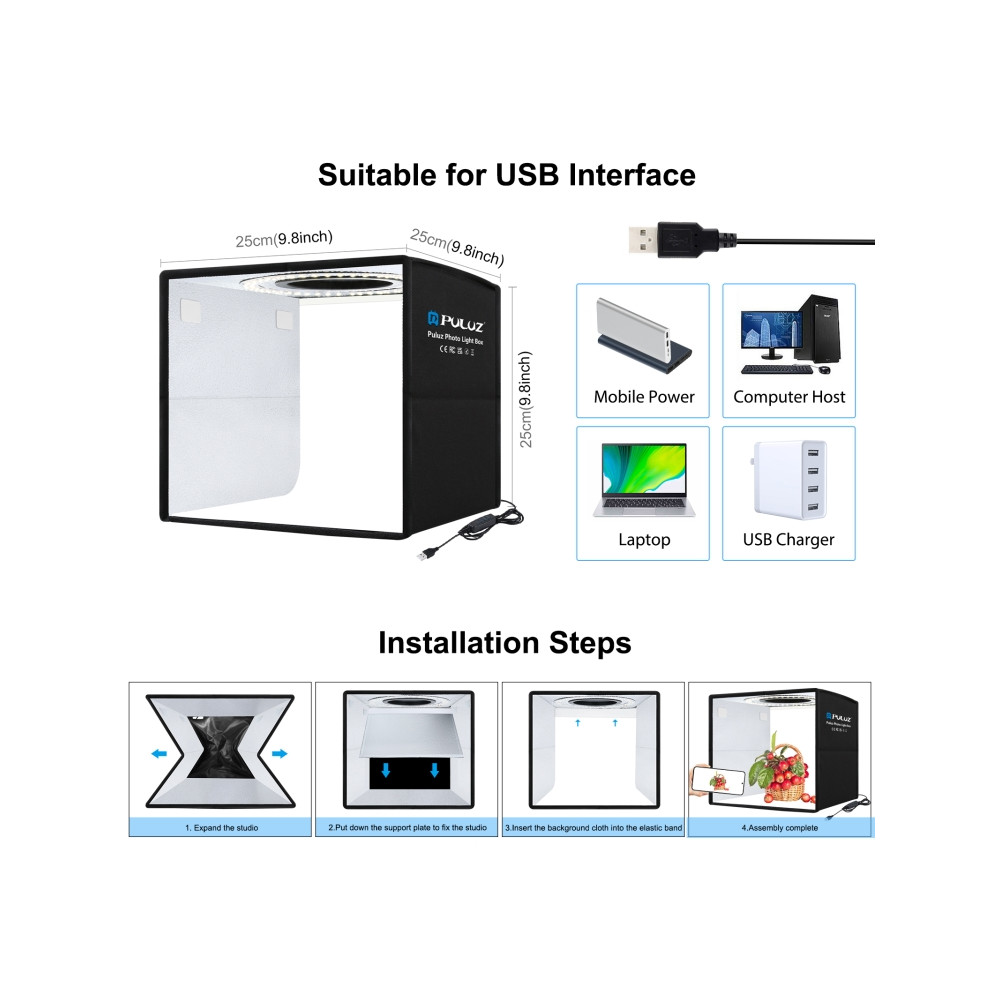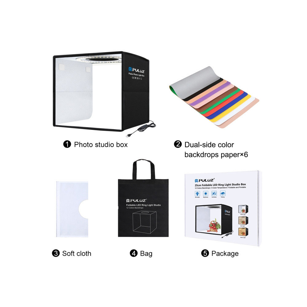 PULUZ 40cm skladacie, prenosné kruhové svetlo USB, fotografické osvetlenie štúdia, box na...