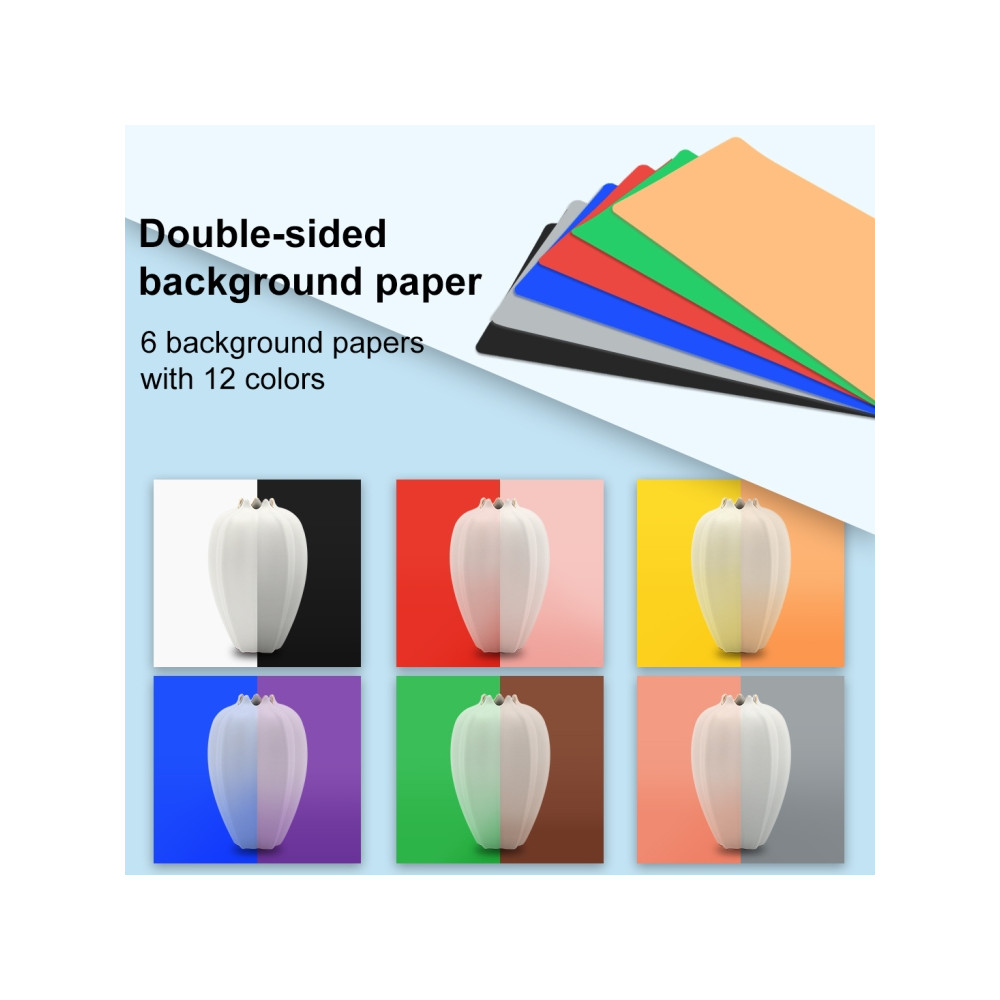 4. Prenosný skladací dizajn, jednoduchšia inštalácia a prenášanie, zabudované LED svetlo, poskytuje priemerné svetlo, zabraňuje tieňom a odrazom na fotografii.
