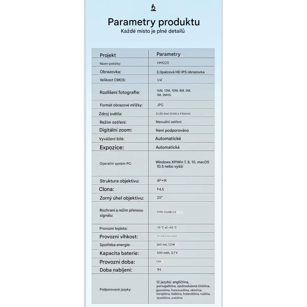 Ručná digitálna lupa (mikroskop) s 2" obrazovkou je ideálnym nástrojom pre tých, ktorí potrebujú detailný pohľad na malé objekty. Vďaka rozmerom 16,7 × 9,0 × 2,5 cm a praktickému dizajnu je ľahko prenosná a pohodlne sa drží v ruke. Vďaka LED podsvieteniu je zabezpečený jasný a ostrý obraz aj pri slabom osvetlení, čo je rozhodujúce pre presné pozorovanie.