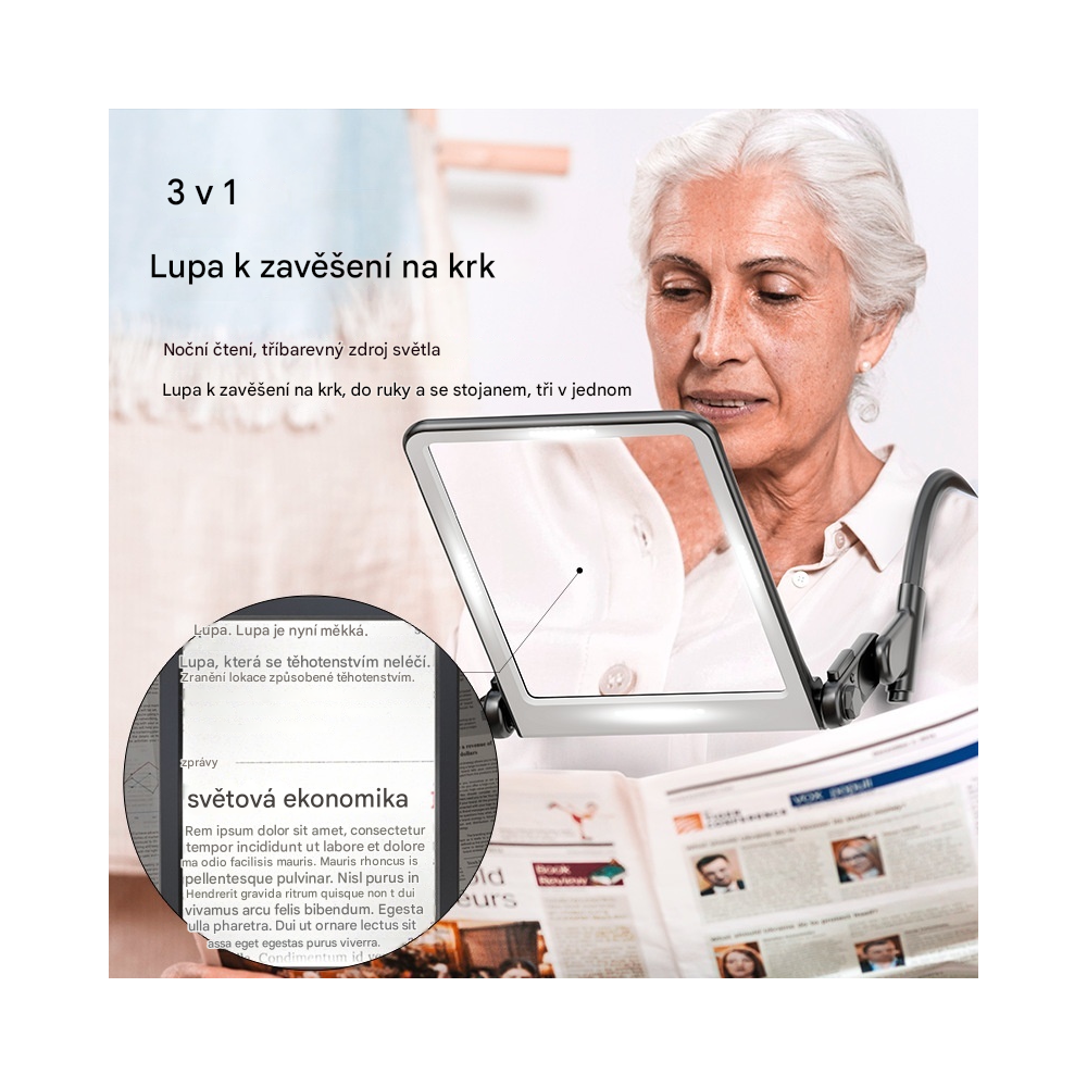 LED lupa na čítanie 3 v 1 je inovatívny nástroj, ktorý prináša maximálne pohodlie a efektivitu všetkým milovníkom čítania, šitia, výroby modelov a iných ručných prác. Tento výrobok je navrhnutý s ohľadom na potreby používateľov, ktorí pri práci vyžadujú voľné ruky a optimálne osvetlenie.