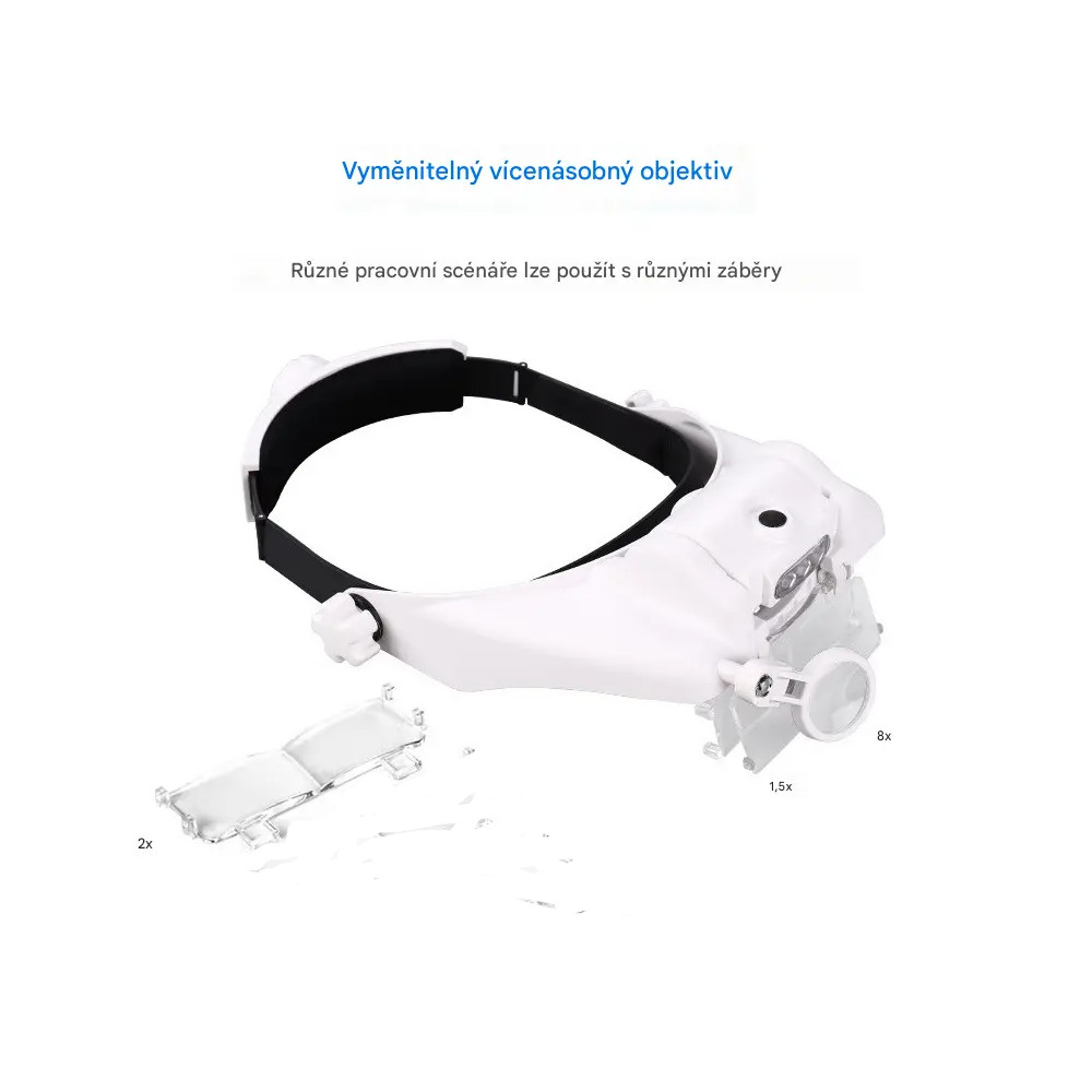 Objavte svet detailov s našou náhlavnou lupou s LED osvetlením, ktorá je ideálnou voľbou pre každého, kto potrebuje presný pohľad na jemné detaily. Tento nástroj je neoceniteľnou pomôckou pre hodinárov, klenotníkov, modelárov a tých, ktorí radi čítajú drobné texty. S touto lupou budete mať voľné ruky na prácu, čo z nej robí praktické riešenie pre mnohé činnosti vyžadujúce presnosť a sústredenie.420