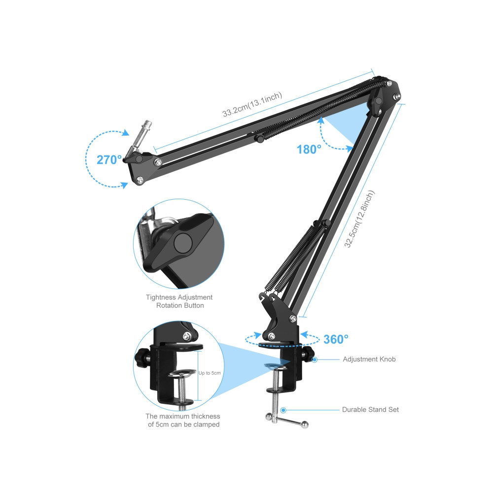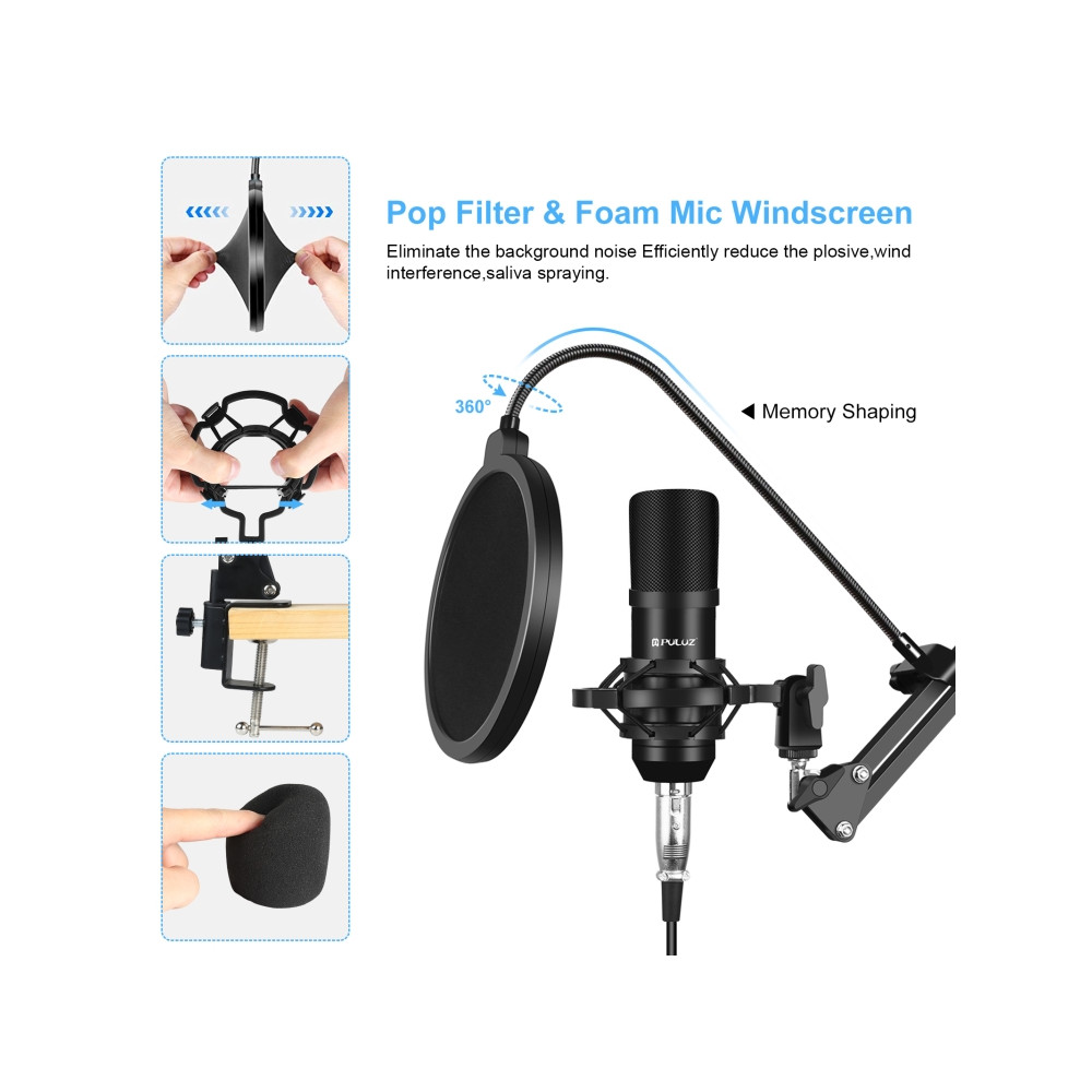 1. Profesionálne vybavenie nahrávacieho štúdia: vybavený týmto mikrofónom, držiakom na otrasy, pop filtrom, nastaviteľným stojanom na zavesenie mikrofónu, nožnicami, penovým krytom proti vetru, napájacím káblom, zvukovou kartou