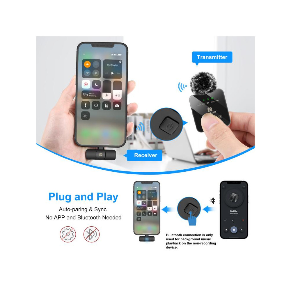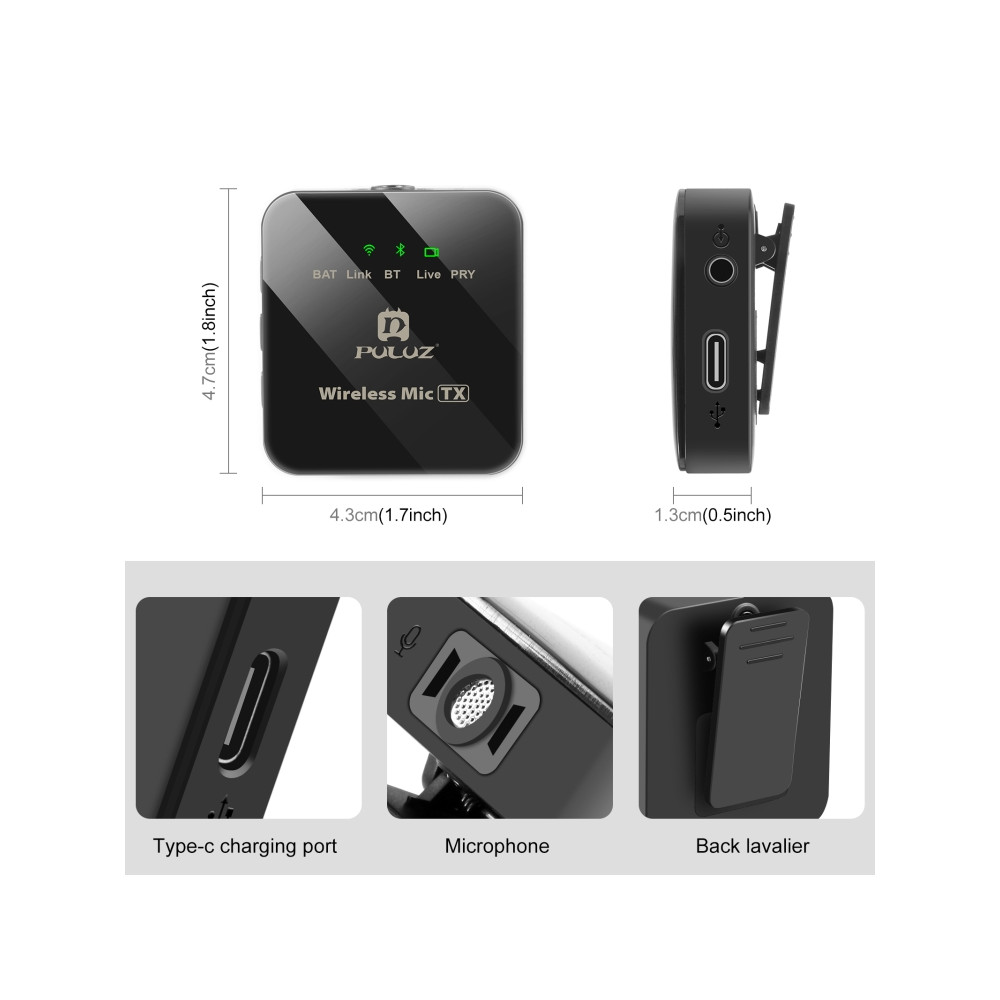 Bezdrôtové klopové mikrofóny PULUZ s redukciou šumu pre telefón typu c, prijímač typu c a duálne...