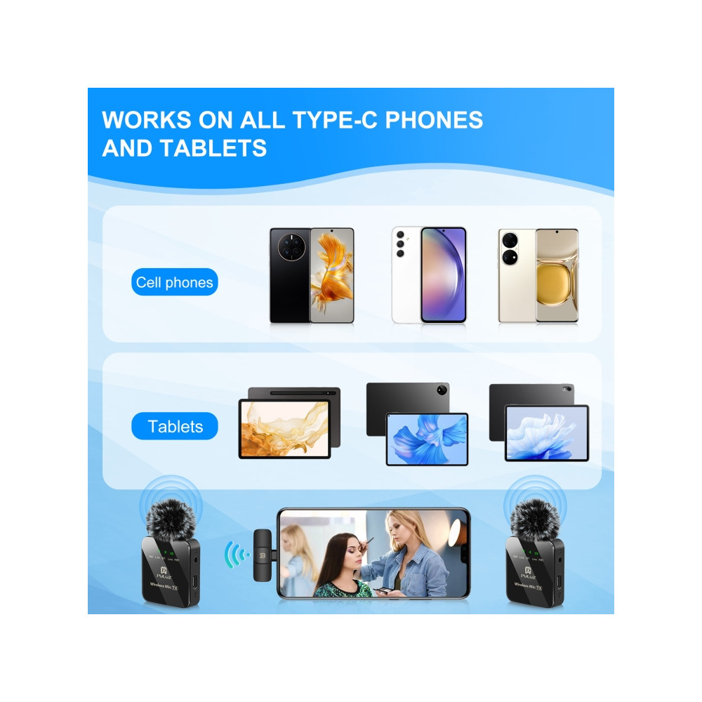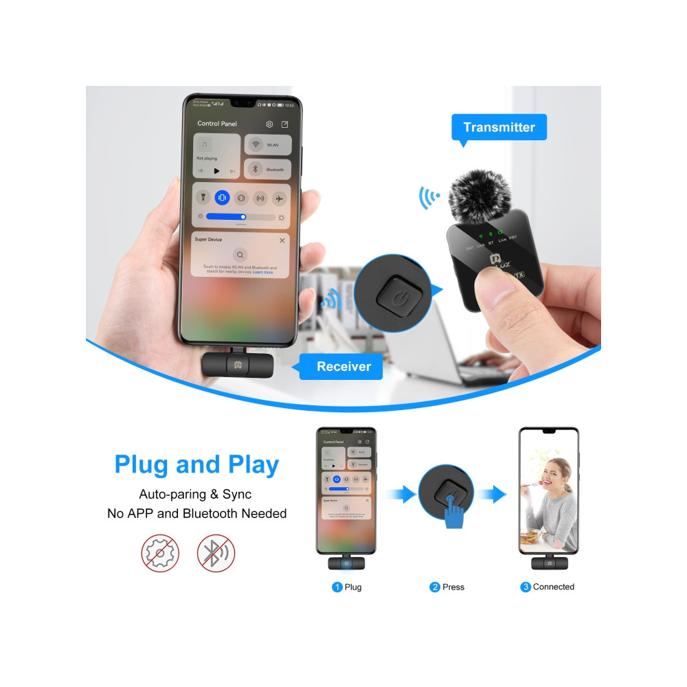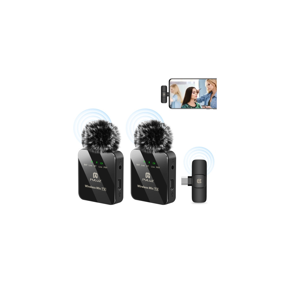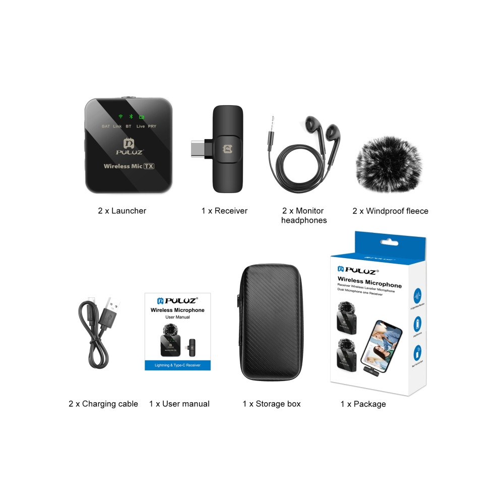 Bezdrôtové klopové mikrofóny PULUZ (2 ks) s redukciou šumu pre iPhone / iPad, 8-pinový prijímač a...