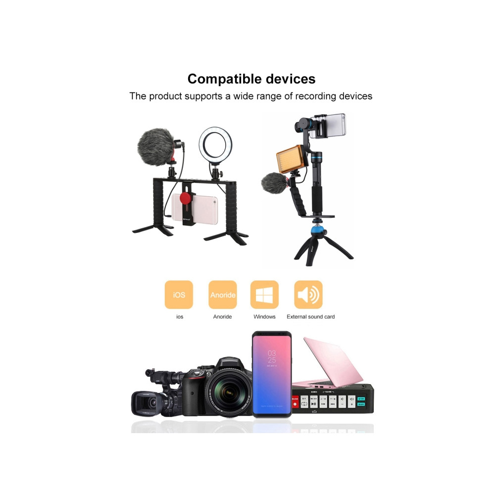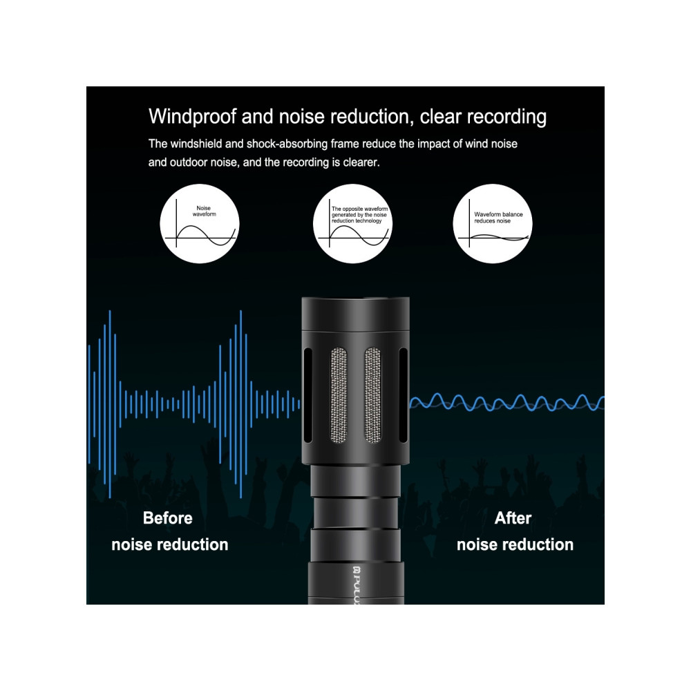 PULUZ Profesionálny kondenzátorový videomikrofón s 3,5 mm audio káblom pre DSLR a DV kameru