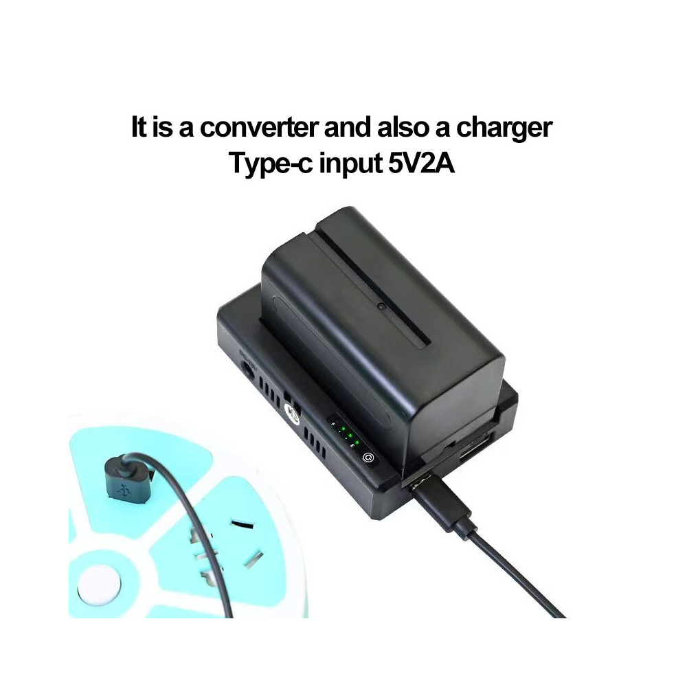 Tento multifunkčný adaptér je ideálnou voľbou pre profesionálnych fotografov a kameramanov, ktorí potrebujú spoľahlivé a flexibilné riešenie napájania pre svoje zariadenia. Do adaptéra vložte batériu NP-F ( ktorá má veľkú kapacitu, čím sa predlžuje čas používania vášho zariadenia) Jeho robustná konštrukcia a široká kompatibilita z neho robia neoceniteľné príslušenstvo pre každé snímanie. Adaptér slúži aj ako nabíjačka batérií NP-F pomocou kábla USB-C