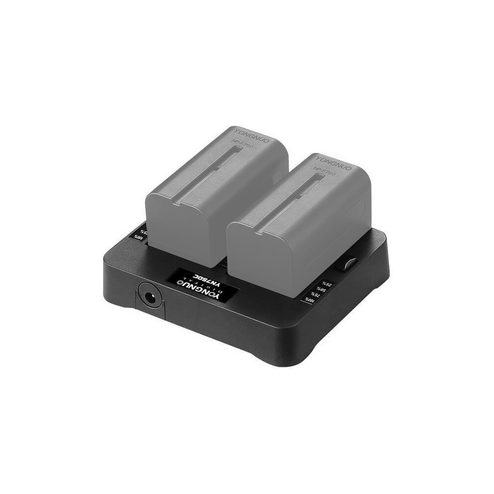 Poznámka: Nabíjačka sa predáva bez napájacieho kábla, ktorý je potrebné zakúpiť samostatne. Medzi kompatibilné napájacie zdroje Yongnuo patria modely FJ-SW20171205000D (12V/5A) a FJ-SW1905000F (19V/5A).
