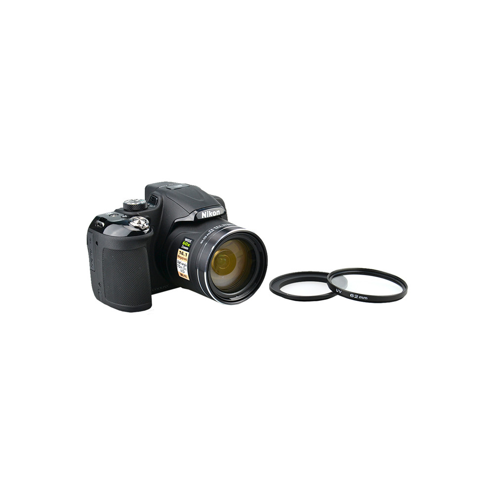 Kiwifotos LA-62P600 je určený pre fotoaparáty Nikon Coolpix P600 P610 a P610S. Možno naň nasadiť filtre s priemerom 62 mm vrátane 62 mm krytky. Obsah balenia : 1x redukcia LA-62P600
