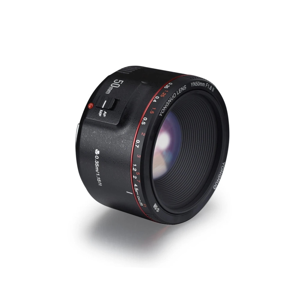 Objektív YN50 mm F1,8 II je navrhnutý špeciálne pre fotoaparáty Canon s bajonetom EF a je kompatibilný s full-frame formátom, čo poskytuje široké možnosti použitia. Tento štandardný objektív s pevnou ohniskovou vzdialenosťou 50 mm poskytuje uhlopriečku 46°, vertikálny uhol 27° a horizontálny uhol 40°, takže je ideálny na rôzne situácie pri fotografovaní od portrétov až po krajiny.