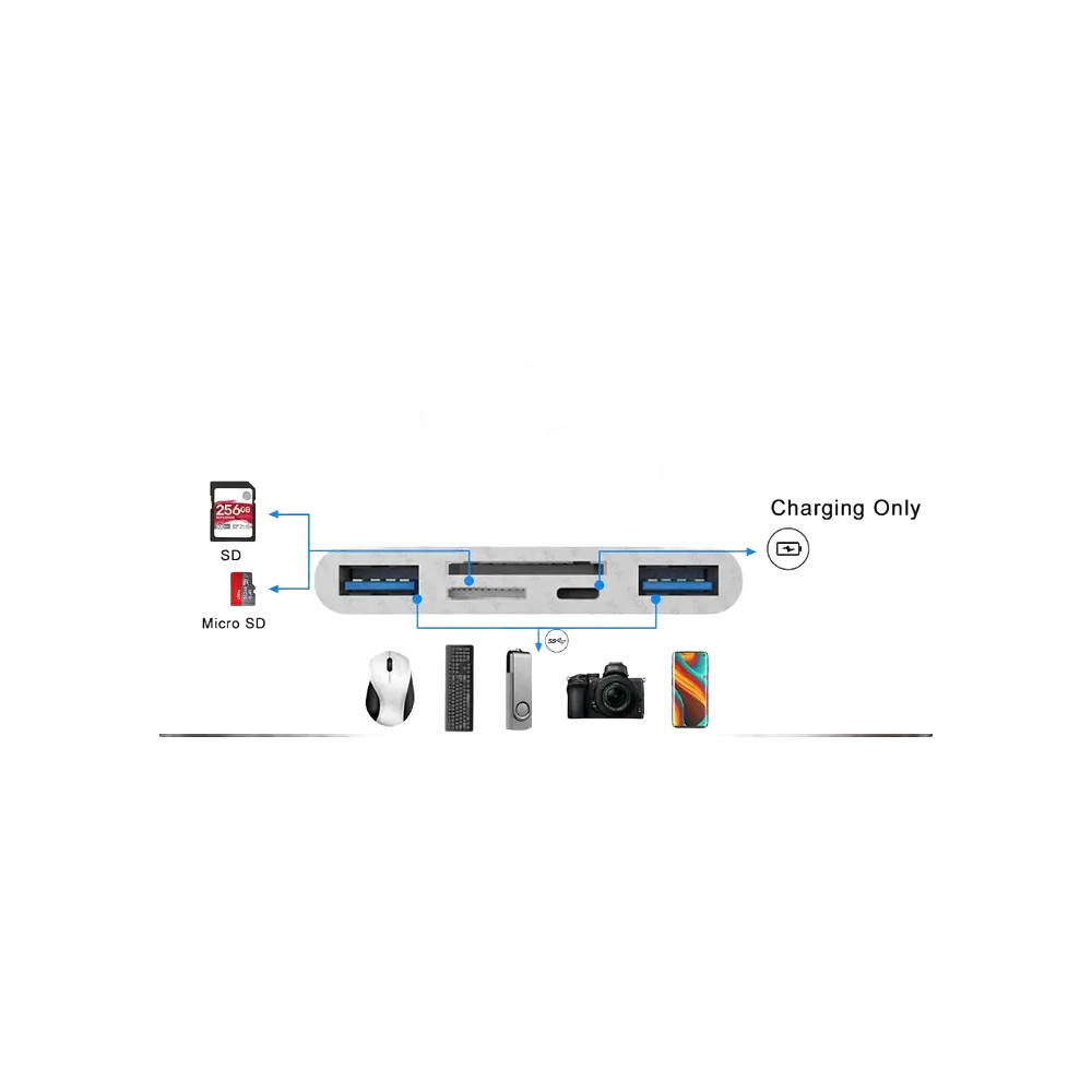 Multifunkčná čítačka pamäťových kariet Pre iPhone s iOS 13 a novším; Obsahuje 3 porty: USB 2.0...