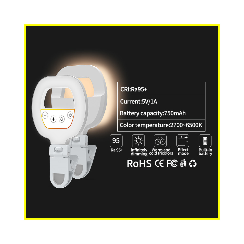 Toto mini LED RGB dobíjacie svetlo je vhodné na každodenné používanie pri fotografovaní alebo natáčaní videí mobilným telefónom, tabletom. Je vybavené klipom a jeho upevnenie je veľmi jednoduché a rýchle.