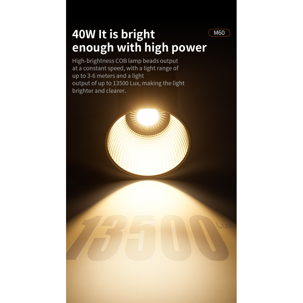 M60 LED štúdiové svetlo 40W je ideálnym nástrojom pre tých, ktorí hľadajú spoľahlivé a všestranné osvetlenie s vynikajúcou kvalitou farieb a jednoduchou obsluhou. Ideálne na profesionálne štúdiové a mobilné použitie.