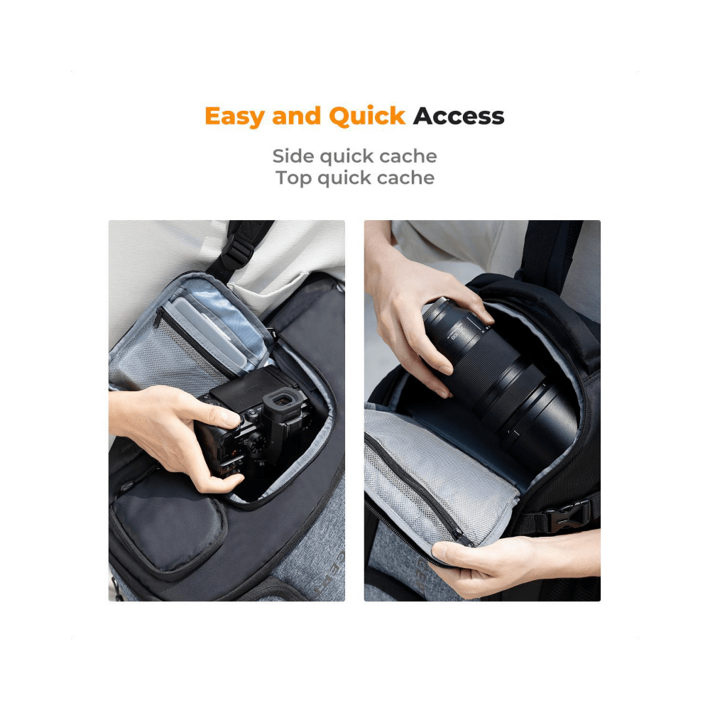 Vždy pripravený: Vďaka inovatívnemu bočnému prístupu máte fotoaparáty a príslušenstvo vždy na dosah, čo vám umožní rýchlo reagovať na každú príležitosť. Okrem toho možnosť úplne otvoriť prednú časť batohu zabezpečuje rýchly a pohodlný prístup k všetkému vášmu vybaveniu.