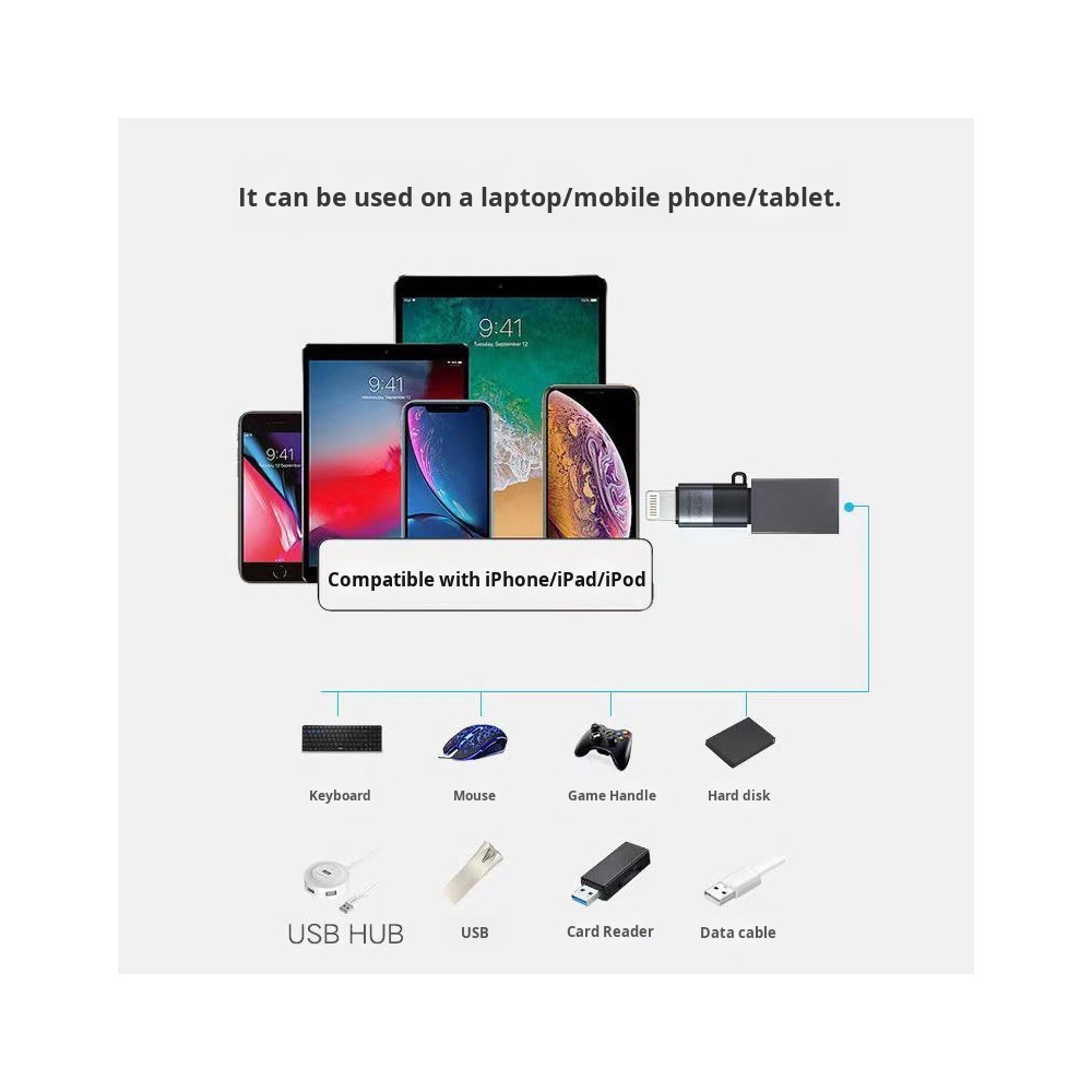 PULUZ USB-C / Type-C na 8-pinový OTG adaptér (čierny) . Lichobežníkový konektor. Model: PU649B