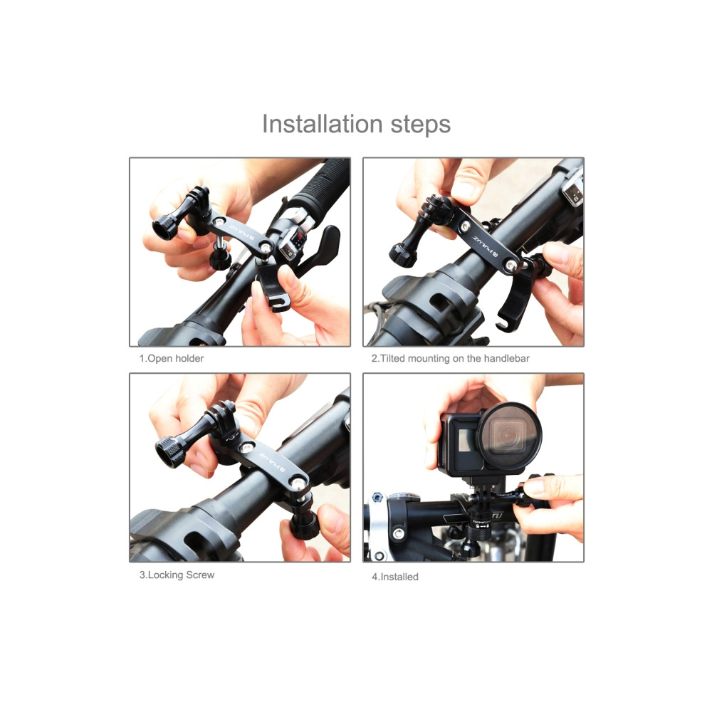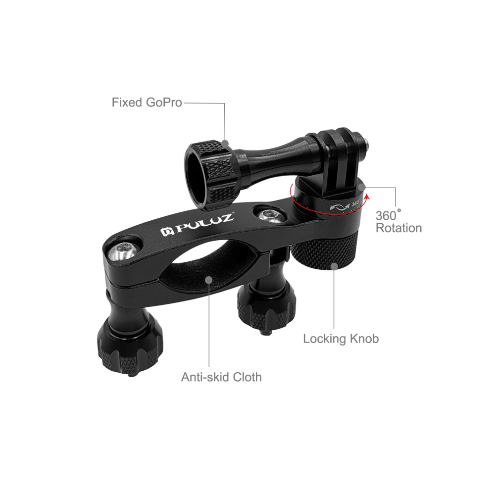 PULUZ 360° otočný hliníkový držiak na riadidlá so skrutkou pre GoPro, Insta360, DJI a iné akčné kamery (čierny)
