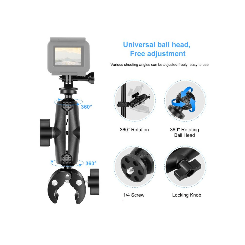 PULUZ držiak na riadidlá motocykla s držiakom na statív a skrutkou pre GoPro, Insta360, DJI a iné...
