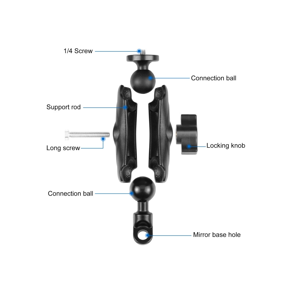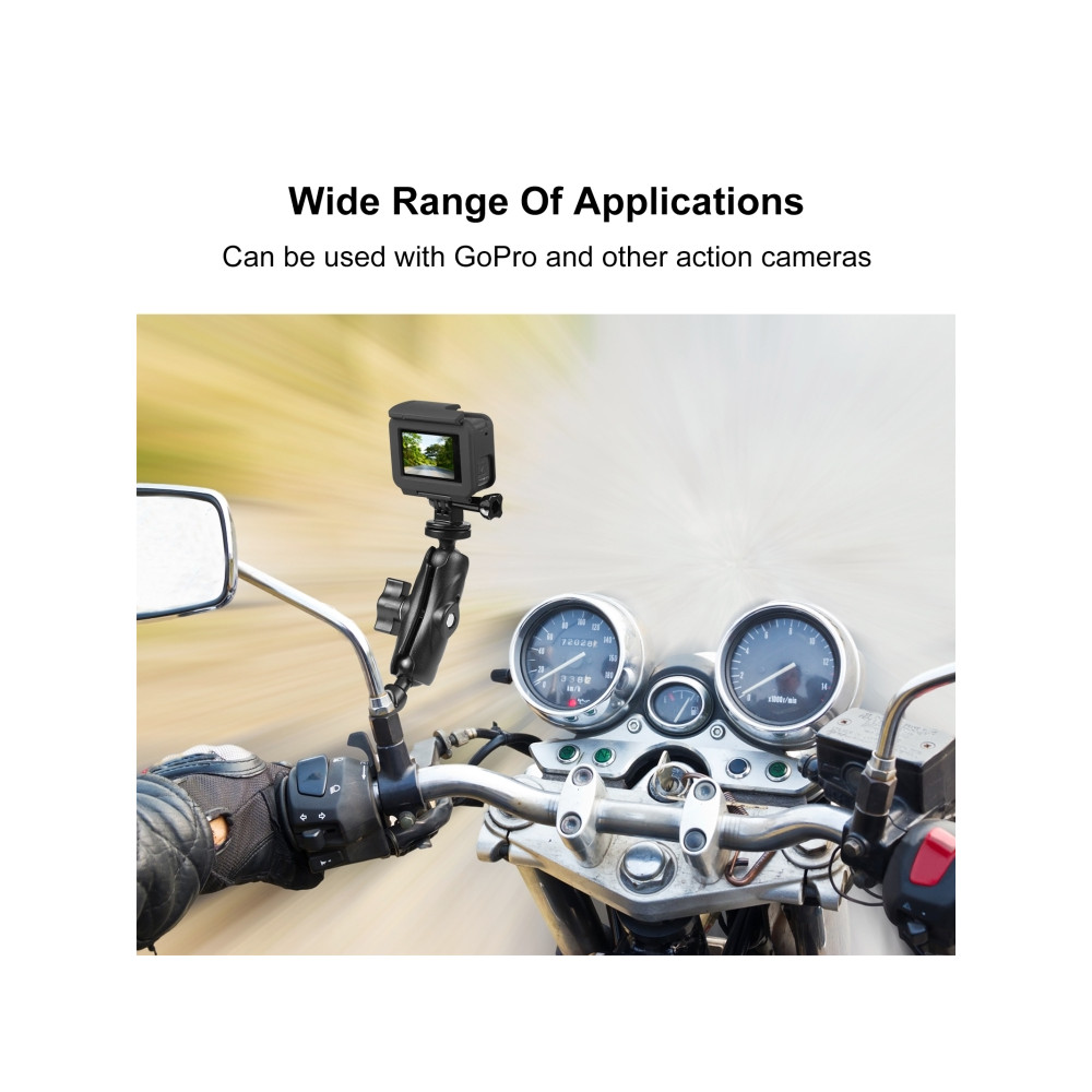 PULUZ PU702B Držiak s guľovou hlavou , ktorý sa montuje pod zrkadlo motocykla Držiak je určený pre GoPro a iné akčné kamery.