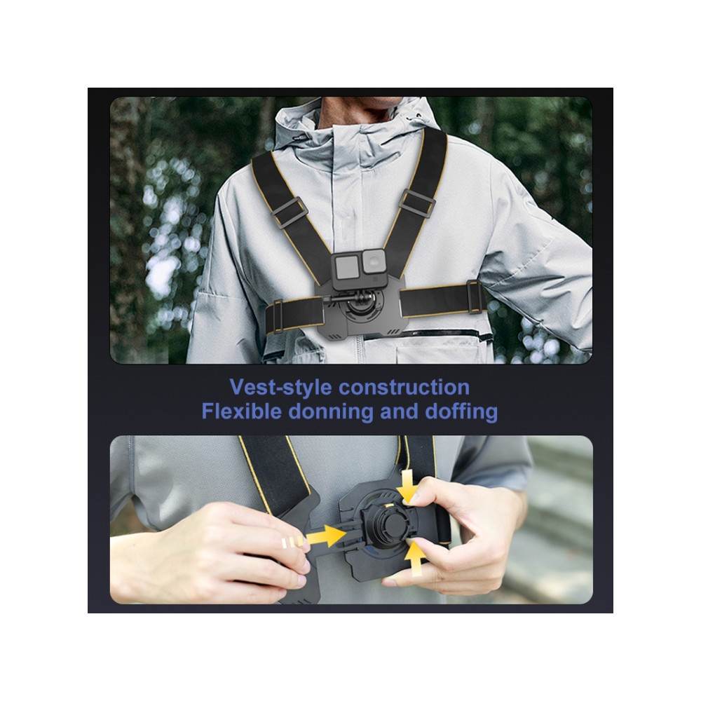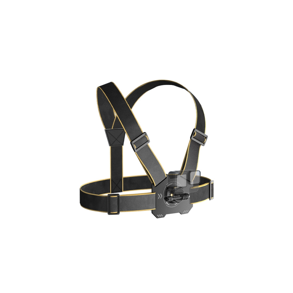 2. Hrudný popruh je vyrobený z priedušného a ľahkého materiálu, ktorý poskytuje maximálne pohodlie, ideálne na dlhodobé nahrávanie videa. Vďaka elastickému pásu a pracke na nastavenie veľkosti sa prispôsobí rôznym tvarom tela.