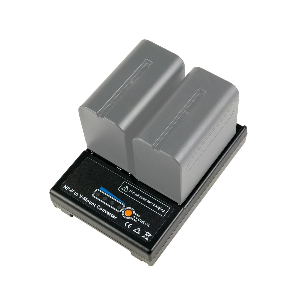 Adaptér 2× NP-F na V-Lock/V-Mount umožňuje pripojiť dve batérie NP-F (napr. NP-F550, NP-F750, NP-F970) k zásuvke V-Mount, čím poskytuje pohodlný zdroj energie pre osvetľovacie zariadenia a videokamery. Kvalitná plastová konštrukcia je odolná a ľahká a mechanický zámok chráni batérie pred náhodným odpojením. Adaptér má 4 LED diódy, ktoré poskytujú informácie o stave nabitia článkov, čo uľahčuje riadenie pracovného času na scéne.