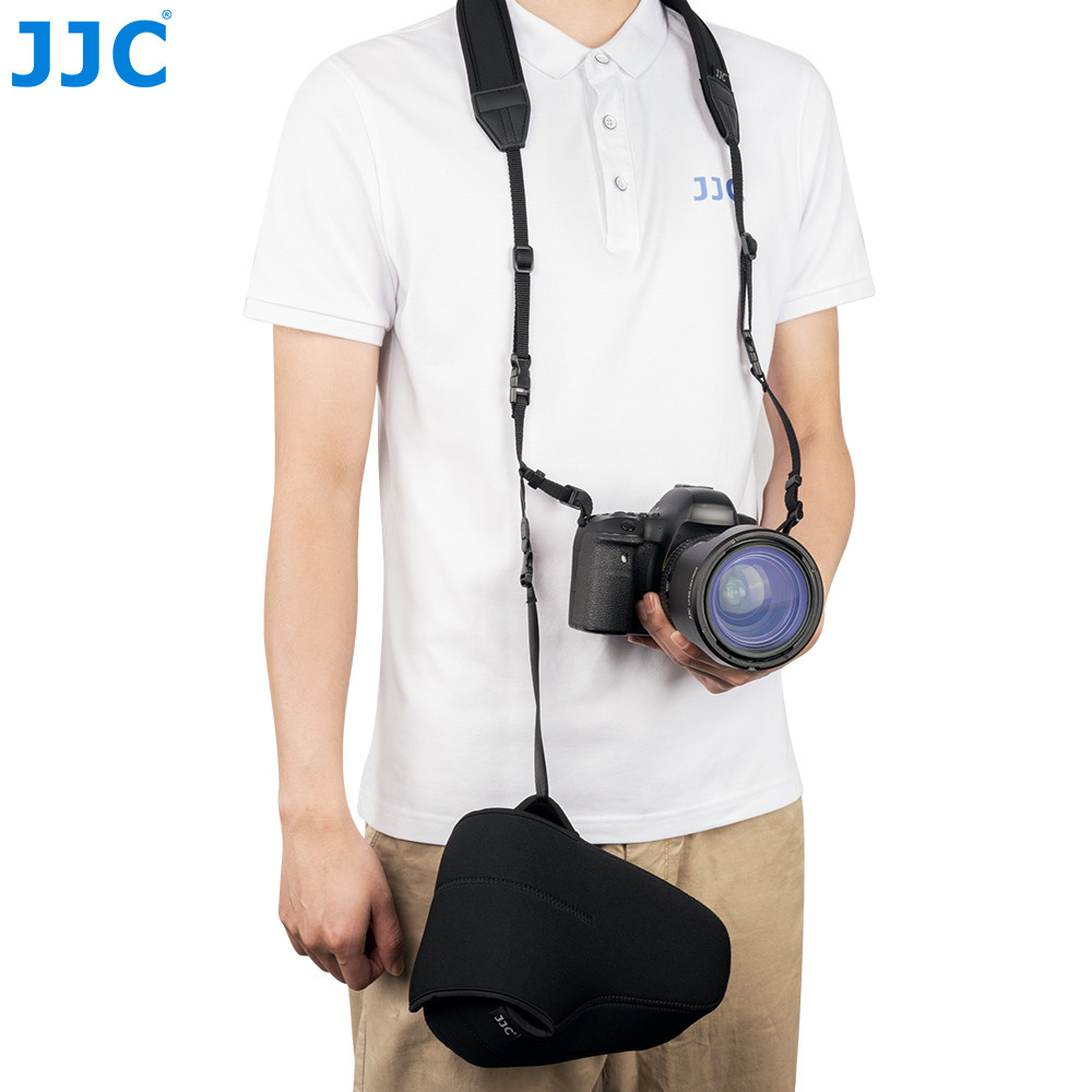 Neoprénové puzdro na fotoaparát JJC O.N.E OC-MC Series chráni fotoaparát pred nečistotami, prachom, škrabancami a ľahkými nárazmi. Pre jednoduché používanie sa puzdro otvára a zatvára pomocou chlopne na suchý zips. Vďaka jednoduchému prístupu môžu fotografi rýchlo vybrať fotoaparát. Pružný materiál puzdra navyše umožňuje jeho použitie pre fotoaparáty rôznych veľkostí. Puzdro má štýlové prešívanie okrajov, ktoré mu dodáva ručne vyrobený vzhľad a robí ho atraktívnym. Fotografi majú tiež možnosť používať toto puzdro s popruhom na krk alebo bez neho. Po vybratí puzdra ho možno pripevniť k popruhu na krk pomocou odolnej pásky, ktorá je súčasťou balenia.