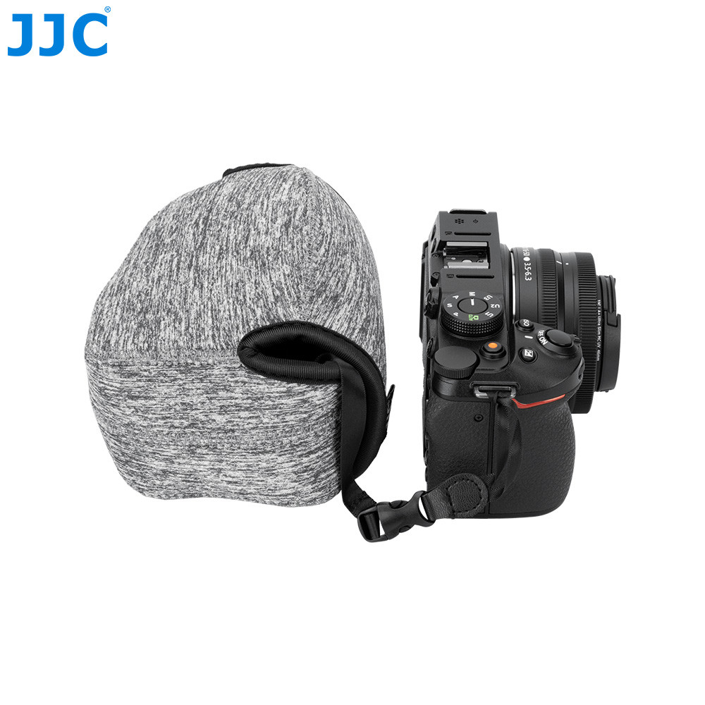 Puzdro na bezzrkadlovku JJC OC-Z1 je špeciálne navrhnuté pre objektív NIK. Z50+16-50 mm + NIK. HN-40/ JJC LH-HN40, NIK. Z fc+objektív 16-50 mm, objektív FUJI. X-S10+objektív 15-45 mm, objektív FUJI. X-T50+objektív XC15-45 mm F3,5-5,6 OIS PZ, objektív CAN. EOS R50+objektív RF-S 18-45 mm F4,5-6,3 IS STM/ objektív RF 50 mm F1,8 STM, objektív SON.ZV-E10 II+objektív E PZ 16-50 mm F3,5-5,6 OSS II,SON. ZV-E10 II+E PZ 16-50 mm f/3,5-5,6 OSS, objektív SON.ZV-E10 II+E 20 mm f/2,8, objektív SON.ZV-E10 II+E 16 mm f/2,8. Zachováva a chráni fotoaparát pred prachom, nárazmi, poškriabaním a ľahkými údermi. Puzdro sa otvára a zatvára pomocou chlopne so suchým zipsom na jednoduché použitie. Ľahko prístupný dizajn vám umožní rýchly prístup k fotoaparátu. Pružný materiál puzdra navyše zaručuje, že sa lepšie prispôsobí vášmu zariadeniu. Puzdro má štýlové prešívanie okrajov, ktoré mu dodáva ručne vyrobený vzhľad a robí ho atraktívnym. Fotografi majú tiež možnosť používať toto puzdro s popruhom na krk alebo bez neho. Po odňatí puzdra ho možno pripevniť na popruh na krk alebo pútko na fotoaparát priamo pomocou odolného popruhu, ktorý je súčasťou balenia.
