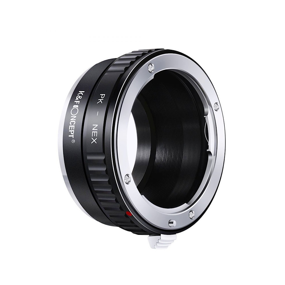 Adaptér bajonetu K&F Concept, ktorý umožňuje nasadiť objektívy Pentax K-mount na fotoaparáty Sony NEX E-mount, ako sú NEX-5R, NEX-6, NEX-7, NEX-F3, A7, A7R alebo A3500. Nespôsobuje odlesky a umožňuje zaostrovať v celom rozsahu ohniskových vzdialeností - vrátane nekonečna.
