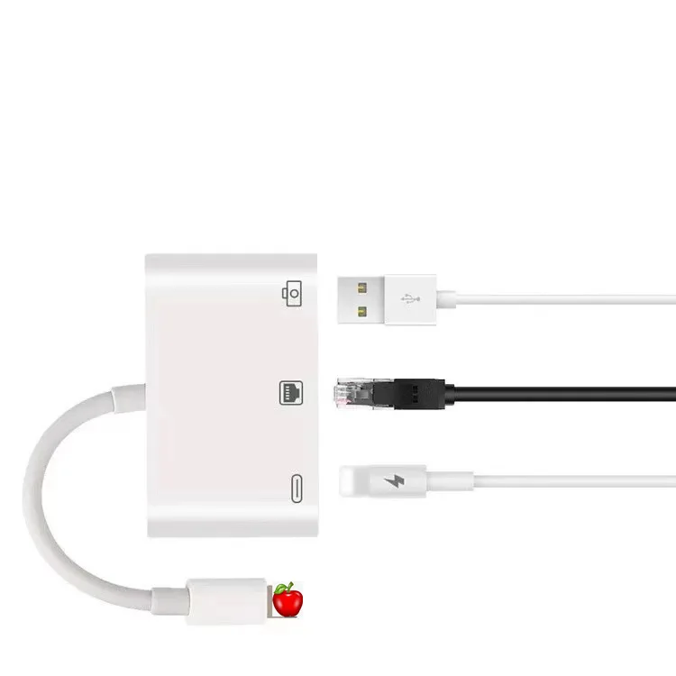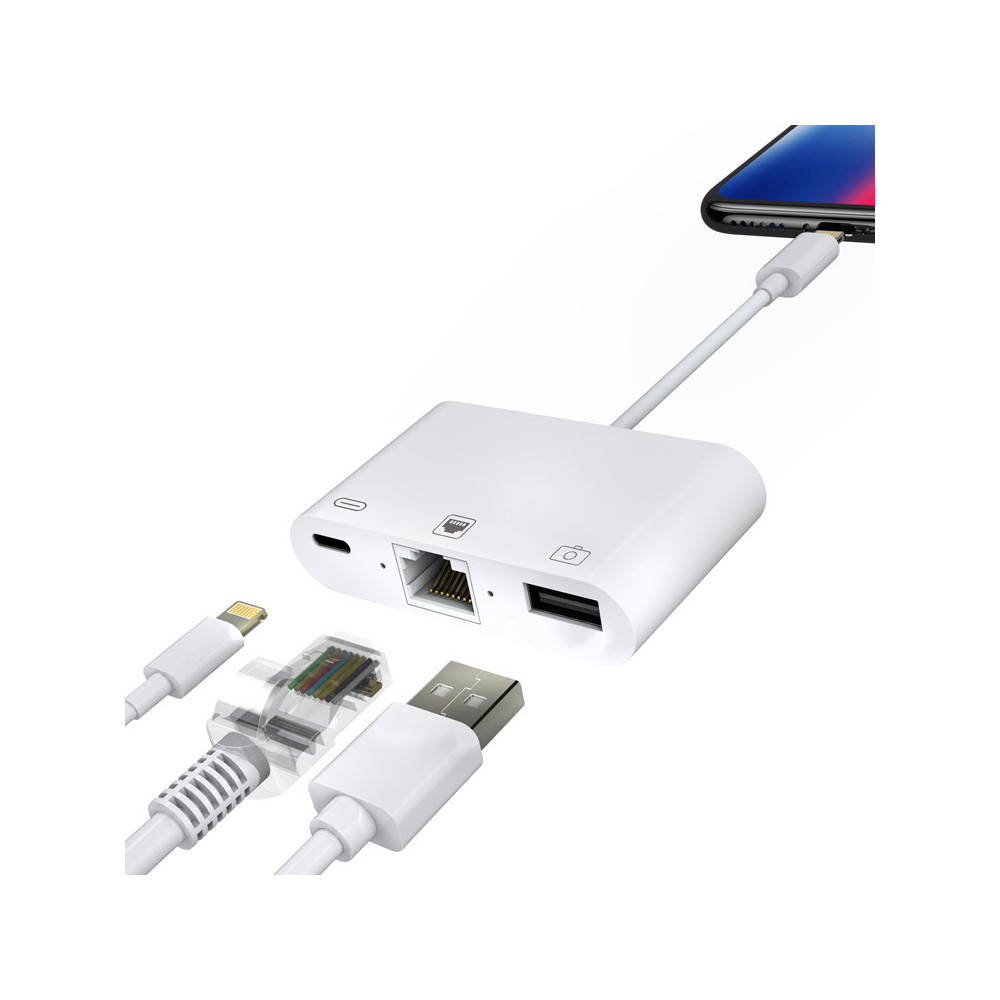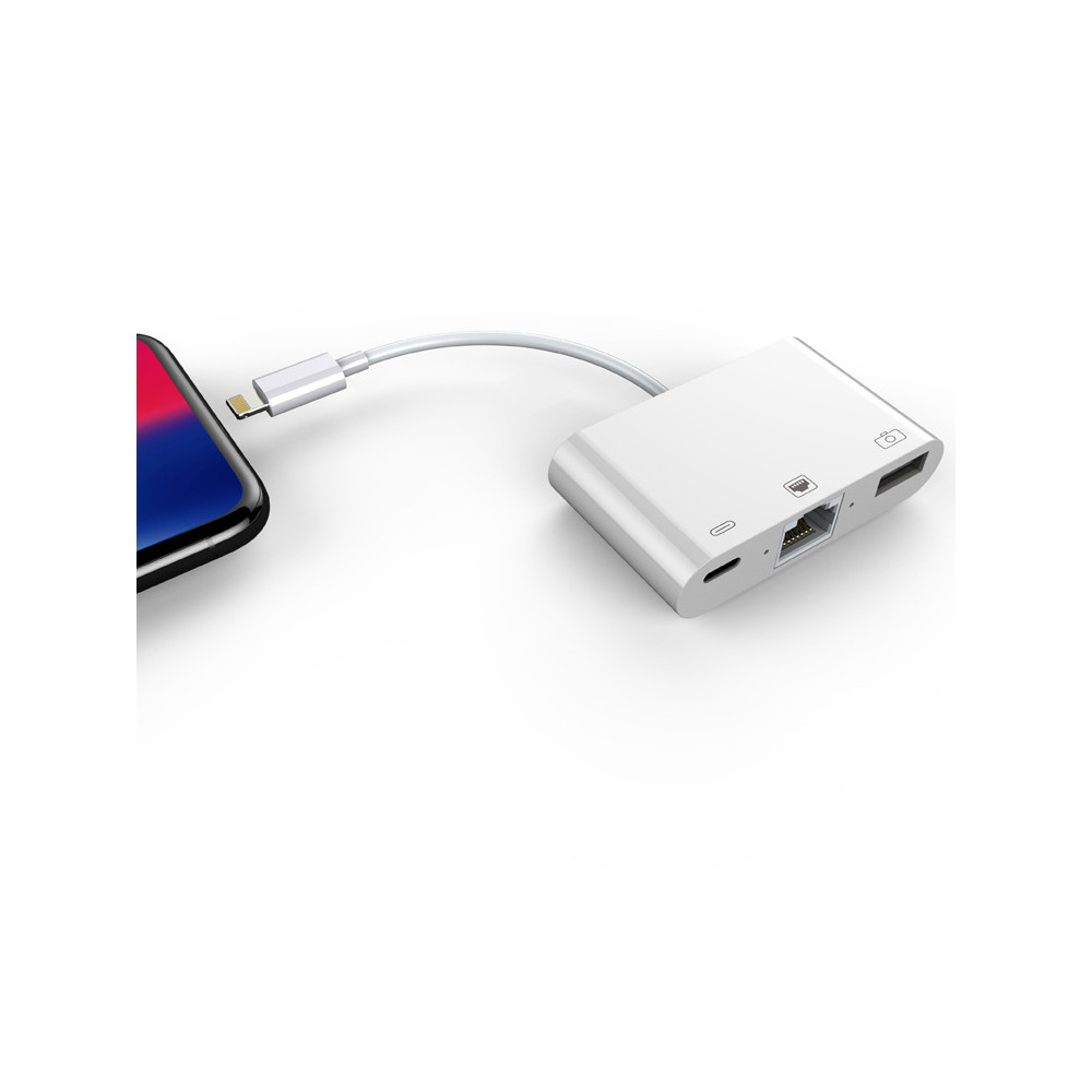 Adaptér RJ45 + USB + Lightning pre zariadenia s konektorom Lightning je dokonalým riešením pre každého, kto potrebuje spoľahlivé a rýchle pripojenie k internetu a možnosť pripojiť ďalšie zariadenia. Tento adaptér je vybavený konektorom Lightning, ktorý je kompatibilný so systémom iOS 9.2 a novším, takže je ideálnou voľbou pre používateľov zariadení iPhone a iPad.