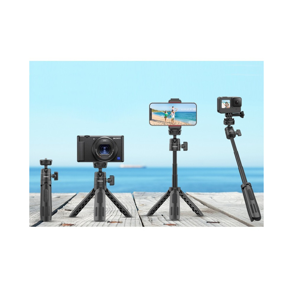 Mini statív ULANZI M12 je praktický statív s guľovou hlavou a výsuvným ramenom. Závit 1/4''. Určený pre malé fotoaparáty, akčné kamery a smartfóny. Súčasťou balenia je držiak pre kamery GoPro. Celková dĺžka - 28,5 cm.