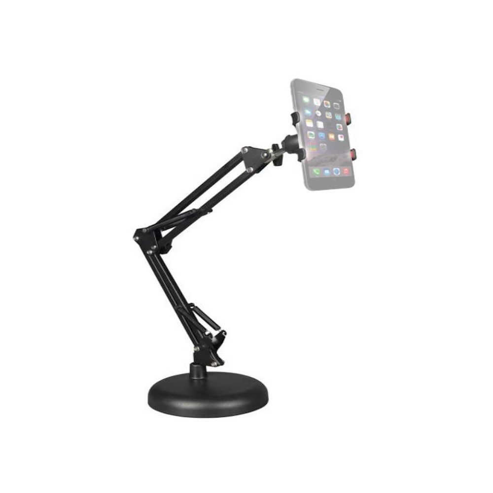 Stolný statív v podobe nastaviteľného ramena je praktické riešenie, ideálne pre takmer všetkých online tvorcov, ktorých hlavným pracovným nástrojom je smartfón. Vďaka širokému rozstupu montážnej svorky, jednoduchému ovládaniu a veľkému rozsahu nastavenia možno telefón upevniť takmer v akomkoľvek uhle a v akejkoľvek polohe. To uľahčuje aranžovanie atraktívnych záberov a umožňuje vytvárať materiály oveľa pohodlnejšie ako pomocou štandardných statívov - trojnožiek alebo selfie tyčí.