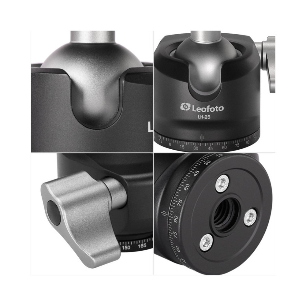 Súprava obsahuje guľovú hlavu Leofoto LH-25, ktorá váži len 178 g, ale bez problémov udrží zariadenie s hmotnosťou až 6 kg. Hlava ponúka plynulý pohyb vo všetkých smeroch, čo umožňuje presnú kompozíciu a s