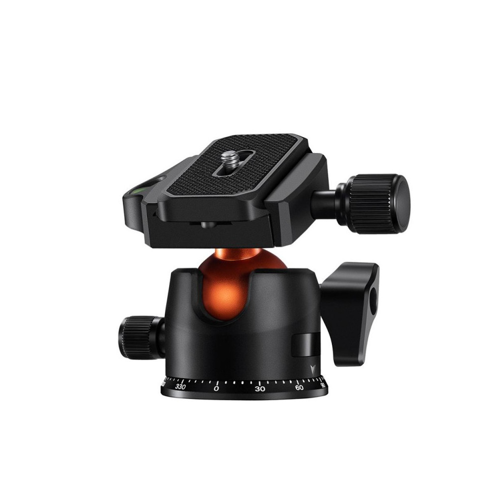 Hlava statívu je vyrobená z kombinácie hliníka a plastu, čo poskytuje optimálnu rovnováhu medzi hmotnosťou a odolnosťou. Široké guľôčkové ložisko s veľkou svorkou uľahčuje zmenu polohy fotoaparátu a 360° uhlová stupnica spolu s vodováhou umožňuje presné nastavenie horizontu. Rýchloupínací systém ABS je kompatibilný so systémom Arca Swiss a jeho jemné drážky zabezpečujú stabilitu fotoaparátu.