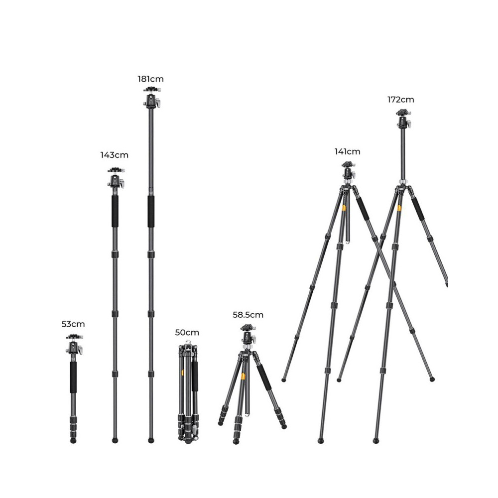 Fotografický statív K&F Concept Carbon s funkciou monopodu X284C4 s guľovou hlavou 172 cm (KF09.116) je nepostrádateľným nástrojom pre všetkých vášnivých fotografov a kameramanov, ktorí hľadajú kombináciu ľahkosti, odolnosti a všestrannosti. Tento statív bol navrhnutý tak, aby vďaka premyslenému dizajnu a pokročilým funkciám spĺňal aj tie najnáročnejšie požiadavky filmárov.