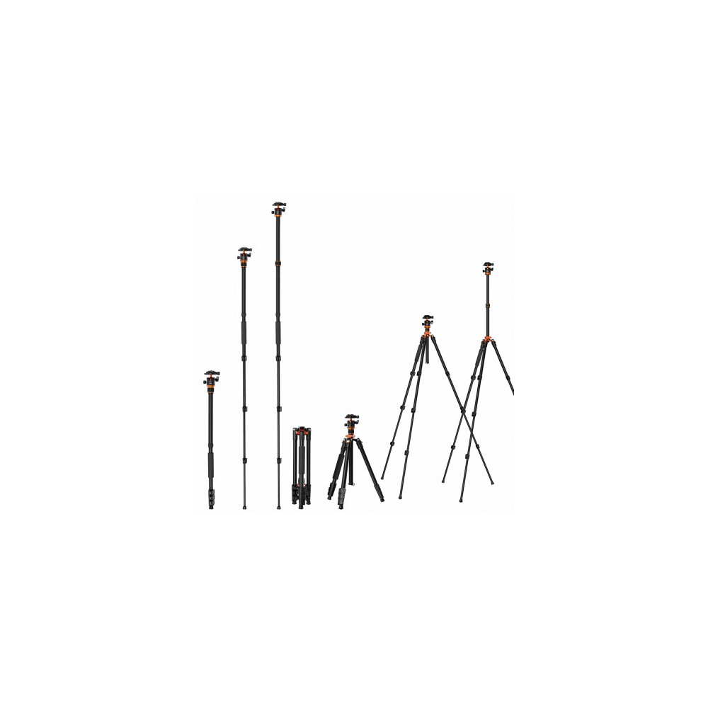 Fotografický statív K&F Concept K254A3 je určený pre všetkých, ktorí hľadajú ľahké, odolné a funkčné vybavenie na fotografovanie v exteriéri. Vďaka použitiu kvalitných materiálov sa vyznačuje nízkou hmotnosťou a vysokou odolnosťou. Mechanizmus reverzného naklápania nôh a guľová hlava umožňujú fotografovať takmer z akéhokoľvek uhla, zatiaľ čo možnosť prepínania stredového stĺpika uľahčuje fotografovanie zhora, čo je skvelé na makrofotografiu.