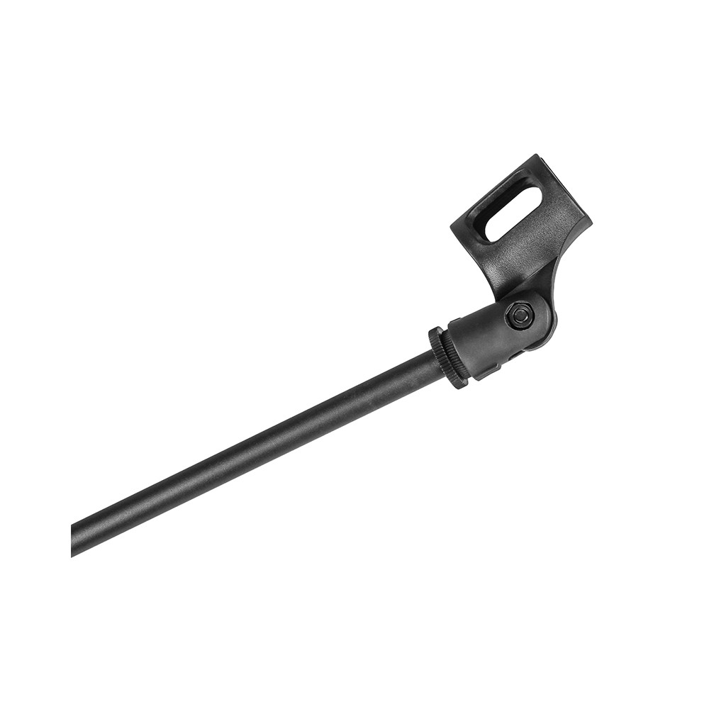 Nastaviteľný výložník pre mikrofón s kĺbom v čiernej farbe. Zmena uhla sklonu a upevnenie na stôl...